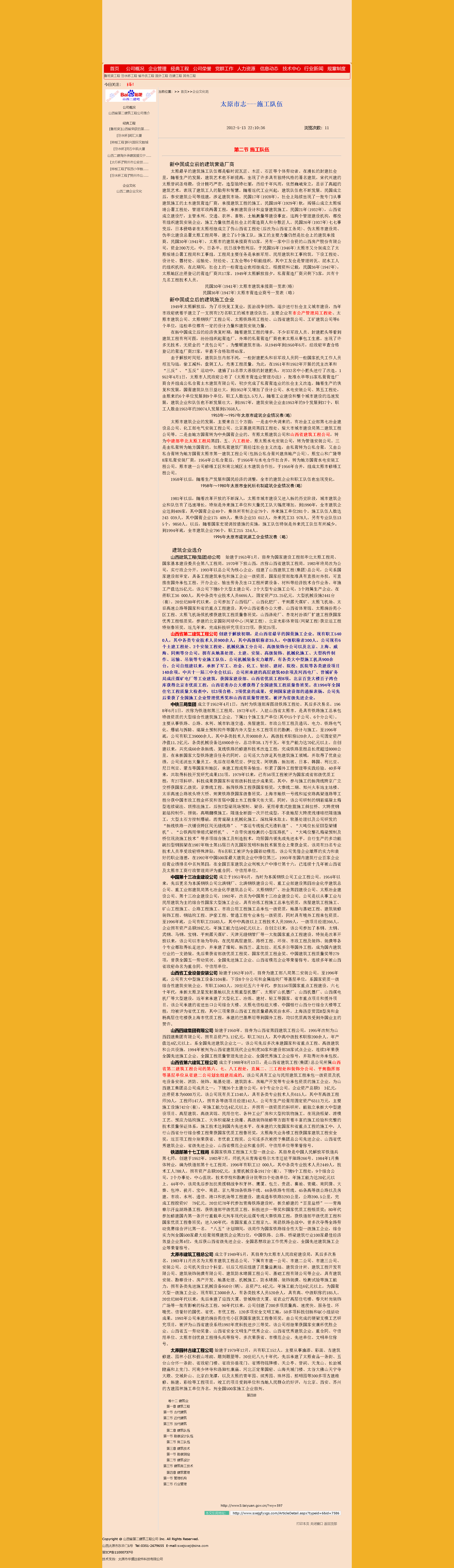 山西省第二建筑工程公司 創(chuàng)建于解放初期,是山西省最早的國(guó)營(yíng)施工企業(yè)。現(xiàn)有職工5400人,其中各類專業(yè)技術(shù)人員900余人,其中高級(jí)職稱者35人,中級(jí)職稱者300人。公司現(xiàn)有6個(gè)土建工程處、2個(gè)安裝工程處、機(jī)械化施工分公司、高級(jí)裝飾分公司以及北京、上海、威海、同朔等分公司。擁有從地基處理、土建、安裝、高級(jí)裝飾、機(jī)械化施工、大型構(gòu)件制作、運(yùn)輸、吊裝等專業(yè)施工隊(duì)伍。公司機(jī)械裝備實(shí)力雄厚,有各類大中型施工機(jī)具900余臺(tái)。公司自組建以來(lái),承擔(dān)了軍工、冶金、化工、輕紡、建材、院校、醫(yī)院等各類建設(shè)項(xiàng)目140余項(xiàng)。中共十一屆三中全會(huì)以后,公司所承建的高層建筑40余項(xiàng)及河西電廠、晉城礦務(wù)局成莊煤礦電廠等工業(yè)建筑,獲國(guó)家建設(shè)部、山西省優(yōu)質(zhì)工程8項(xiàng)。北京百貨大樓百子灣倉(cāng)庫(kù)獲得北京市優(yōu)質(zhì)工程,山西省委辦公大樓獲得了全國(guó)建筑工程質(zhì)量魯班獎(jiǎng)。在1994年全國(guó)住宅工程質(zhì)量大檢查中,以3項(xiàng)合格、2項(xiàng)優(yōu)良的成果,受到國(guó)家建設(shè)部的通報(bào)表?yè)P(yáng)。公司先后榮獲了全國(guó)施工企業(yè)管理優(yōu)秀獎(jiǎng)和山西省質(zhì)量管理獎(jiǎng)。被評(píng)為省級(jí)先進(jìn)企業(yè)。