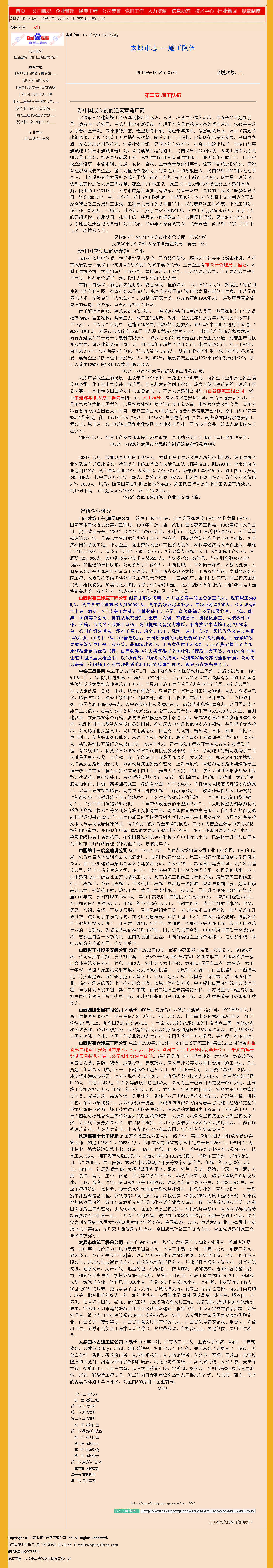 太原最早的建筑施工隊(duì)伍都是臨時(shí)泥瓦匠、木匠、石匠等個(gè)體勞動(dòng)者。在漫長(zhǎng)的封建社會(huì)里,隨著生產(chǎn)的發(fā)展,建筑藝術(shù)也不斷提高,出現(xiàn)了許多具有獨(dú)特風(fēng)格的著名建筑。宋代興建的太原晉祠圣母殿,設(shè)計(jì)精巧嚴(yán)密,造型獨(dú)特壯麗,歷經(jīng)千年風(fēng)雨,依然巍峨聳立,顯示了高超的建筑藝術(shù),表現(xiàn)了建筑工人的勤勞和智慧。隨著近代工業(yè)興起,建筑隊(duì)伍也不斷發(fā)展。民國(guó)成立后,泰安建筑公司等組建,涉足建筑市場(chǎng)。民國(guó)17年(1928年),社會(huì)上陸續(xù)出現(xiàn)了一批專門從事建筑施工的土木建筑營(yíng)造廠商,承攬建筑工程的施工。民國(guó)18年(1929年)秋,閻錫山成立太原綏靖公署工程處,管理軍政兩署工程,承擔(dān)建筑設(shè)計(jì)和監(jiān)督建筑施工。民國(guó)21年(1932年),山西省成立建設(shè)廳,主管水利、交通、農(nóng)林、畜牧、土地測(cè)量等建設(shè)事宜。這兩個(gè)管理建設(shè)機(jī)構(gòu),都沒(méi)有組織建筑安裝企業(yè),施工力量依然是社會(huì)上的營(yíng)造商人和分散匠人。民國(guó)26年(1937年)七七事變后,日本侵略者在太原相繼成立了偽山西省工程處(后改為山西省工務(wù)局)、偽太原市建設(shè)局、偽華北建設(shè)總署太原工程局等。建立了5個(gè)施工隊(duì)。施工的主要力量仍然是社會(huì)上的建筑承攬商。民國(guó)30年(1941年),太原市的建筑承攬商有53家,另有一家中日合資的山西房產(chǎn)股份有限公司,資金200萬(wàn)元,中、日各半??谷諔?zhàn)爭(zhēng)勝利后,于民國(guó)35年(1946年)太原市又分別成立了太原綏靖公署工程局和工事組。工程局主要任務(wù)是承擔(dān)軍用、民用建筑和工事構(gòu)筑。下設(shè)工程處、設(shè)計(jì)處、器材處、運(yùn)輸處、財(cái)經(jīng)處、工友會(huì)等6個(gè)職能組織。其中工友會(huì)是管理磚瓦、泥水工人的組織機(jī)構(gòu)。在此期間,社會(huì)上的一些營(yíng)造業(yè)也相繼成立。根據(jù)資料記載,民國(guó)36年(1947年),太原地區(qū)注冊(cè)登記的營(yíng)造廠商共17家。1949年太原解放前夕,私營(yíng)營(yíng)造廠商只剩下3家,共有十幾名工程技術(shù)人員。
