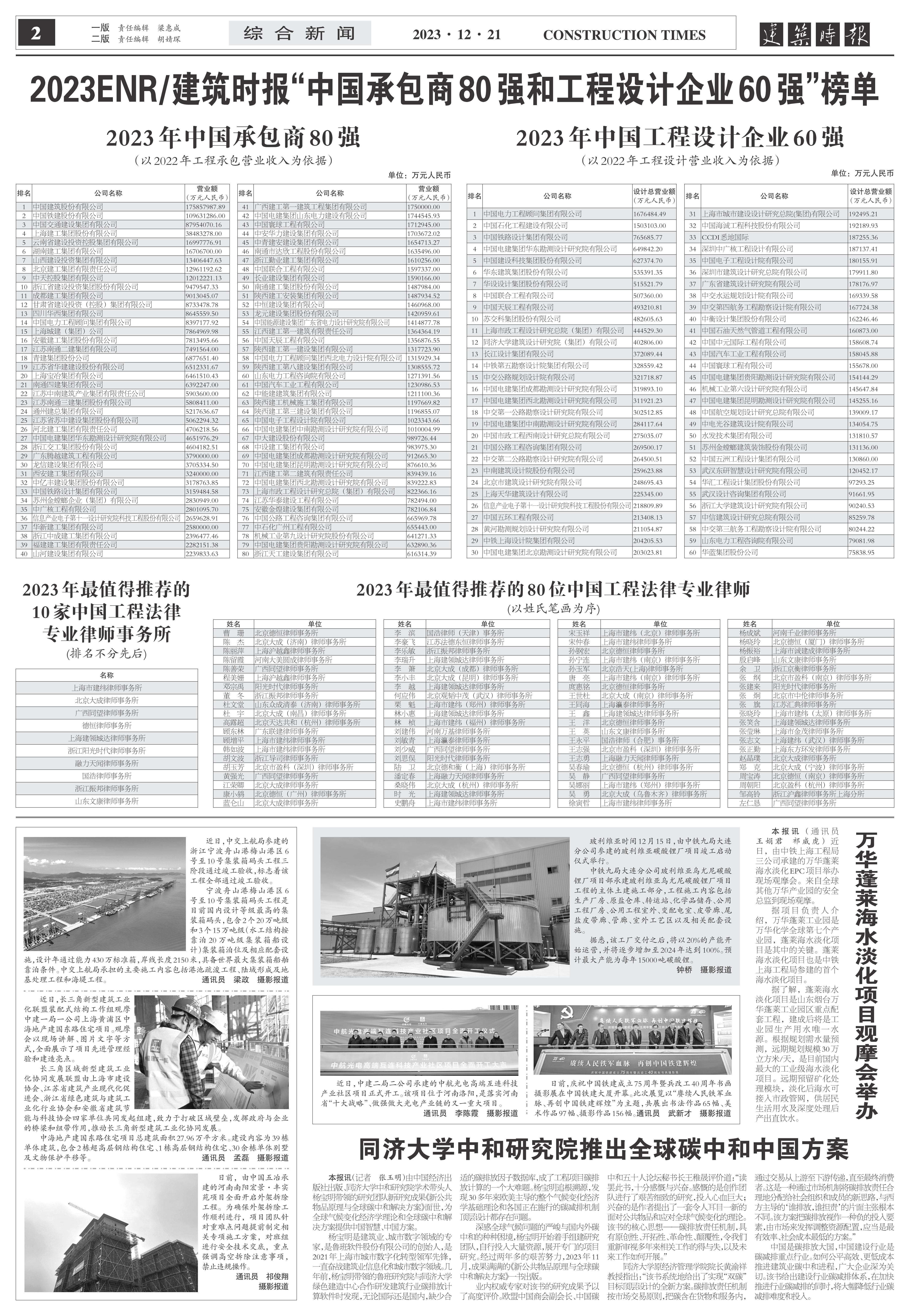 · 【行業(yè)動態(tài)】2023ENR/建筑時報中國承包商80強和工程設計企業(yè)60強榜單公布2023-12-26