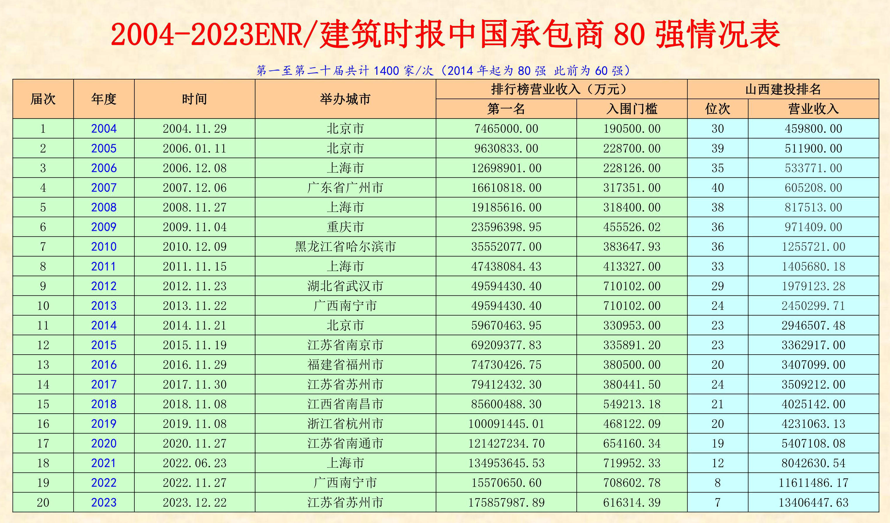 · 【行業(yè)資料】2004-2022ENR/建筑時報中國承包商 80 強統(tǒng)計表2023-08-08