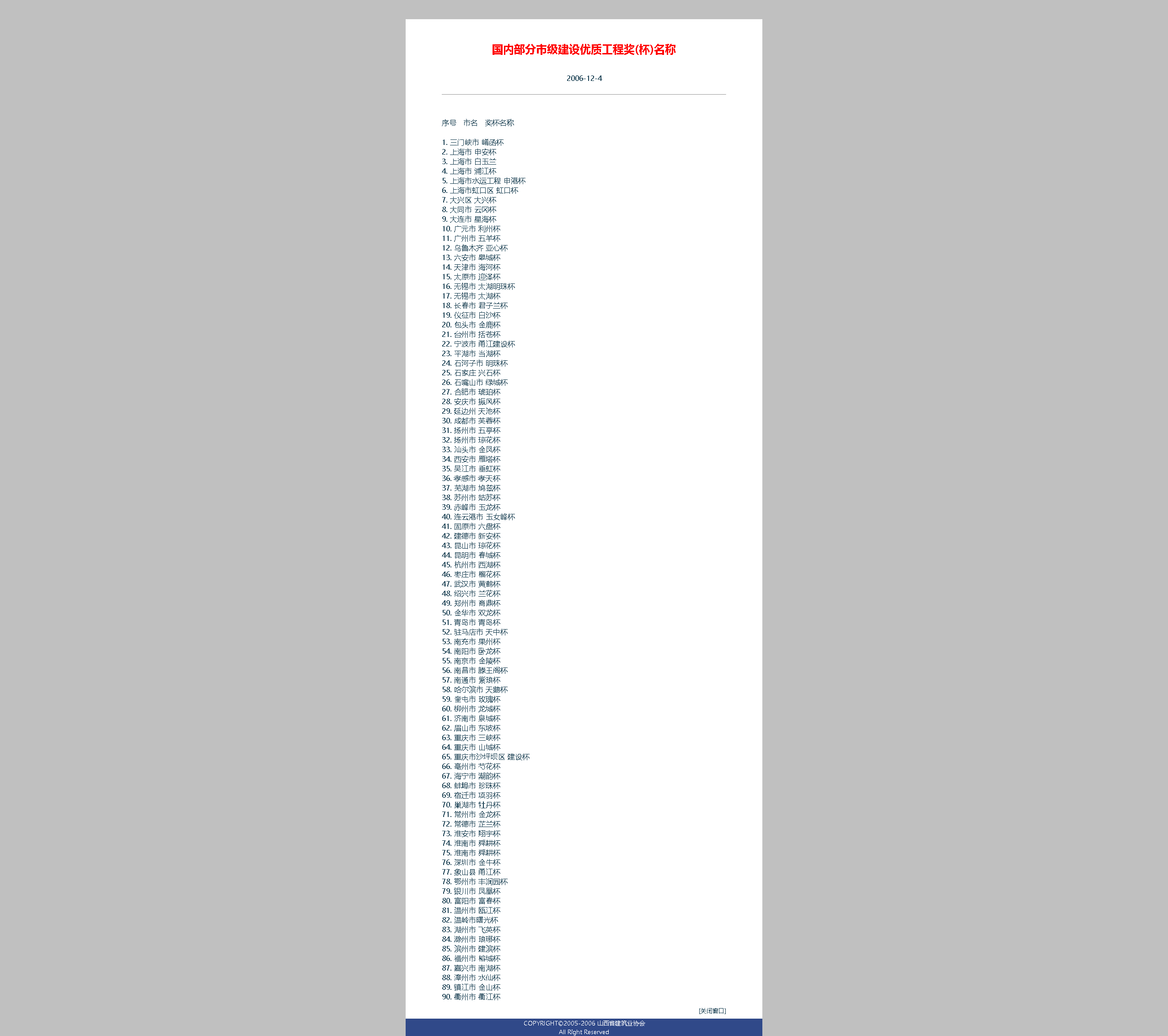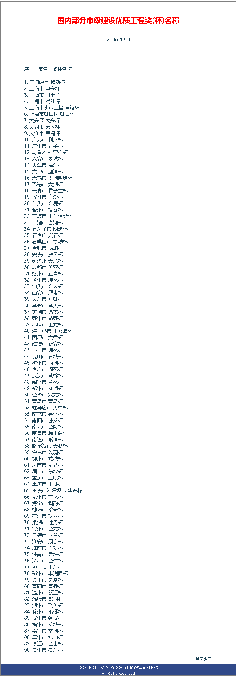 這是十七年前,在山西省建筑業(yè)協(xié)會管理網(wǎng)站時(shí),收集的全國各地建筑業(yè)評獎(jiǎng)名稱,對于了解我們這個(gè)行業(yè)和社會的重視程度,管中窺豹,可見一斑。做企業(yè),首先要知道和懂得瞄準(zhǔn)戰(zhàn)略目標(biāo),有的放矢,正中靶心。