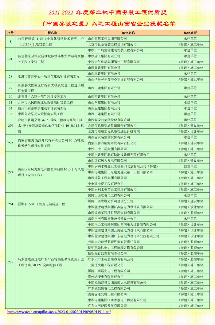 2021-2022 年度第二批中國(guó)安裝工程優(yōu)質(zhì)獎(jiǎng) (中國(guó)安裝之星)入選工程名單