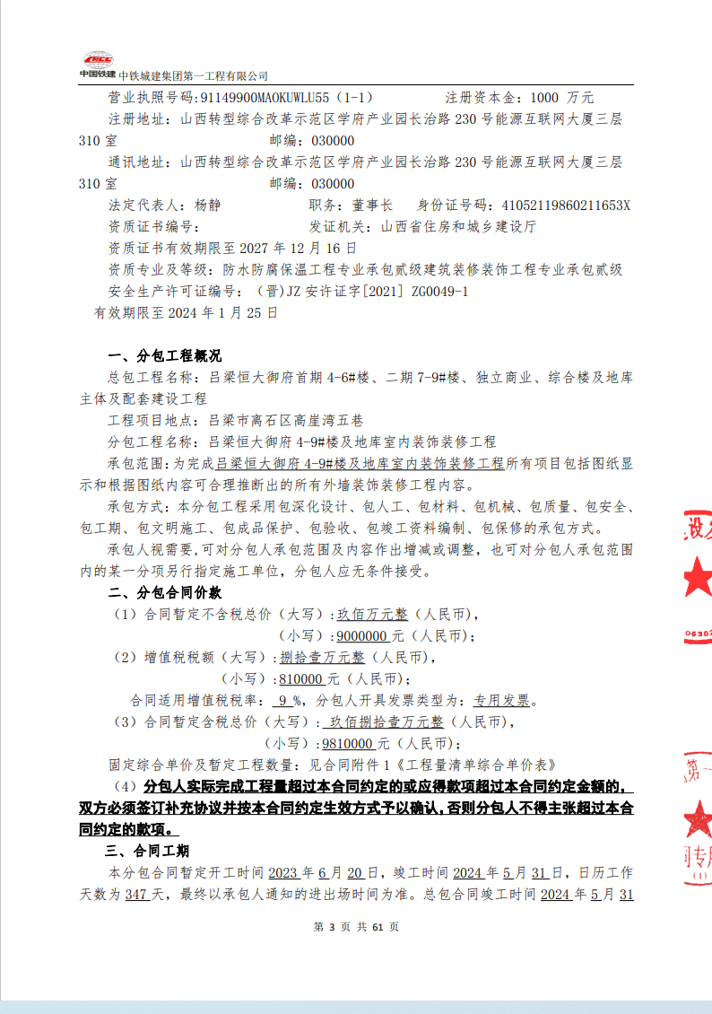呂梁恒大御府室內(nèi)裝飾裝修工程