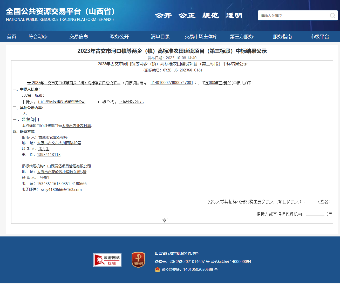 2023古交市河口鎮(zhèn)等兩鄉(xiāng)(鎮(zhèn))高標(biāo)準(zhǔn)農(nóng)田建設(shè)項(xiàng)目(第三標(biāo)段)