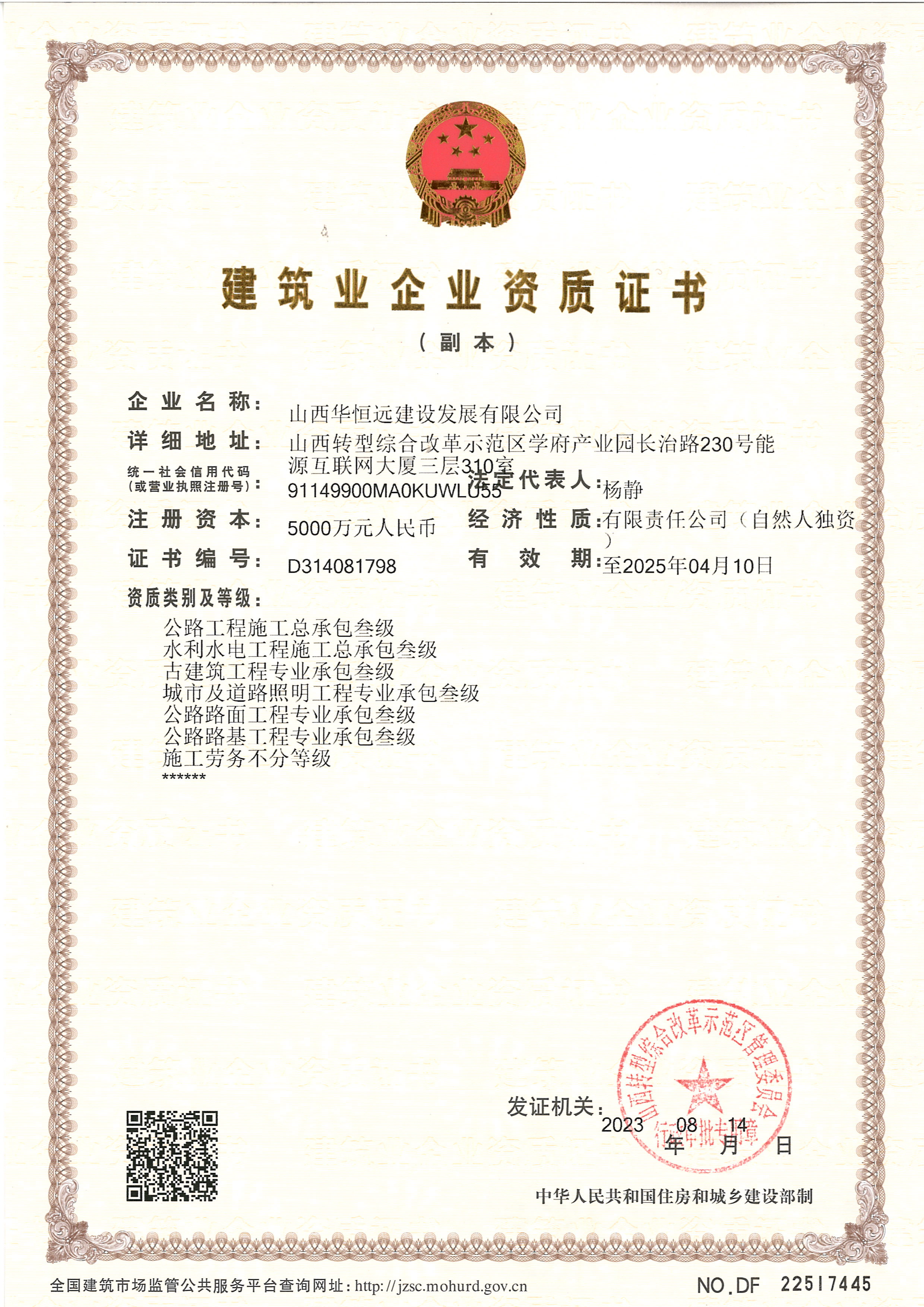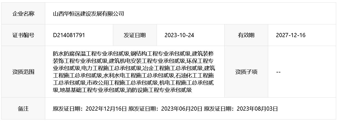 祝賀華恒遠晉升水利水電施工總承包二級資質
