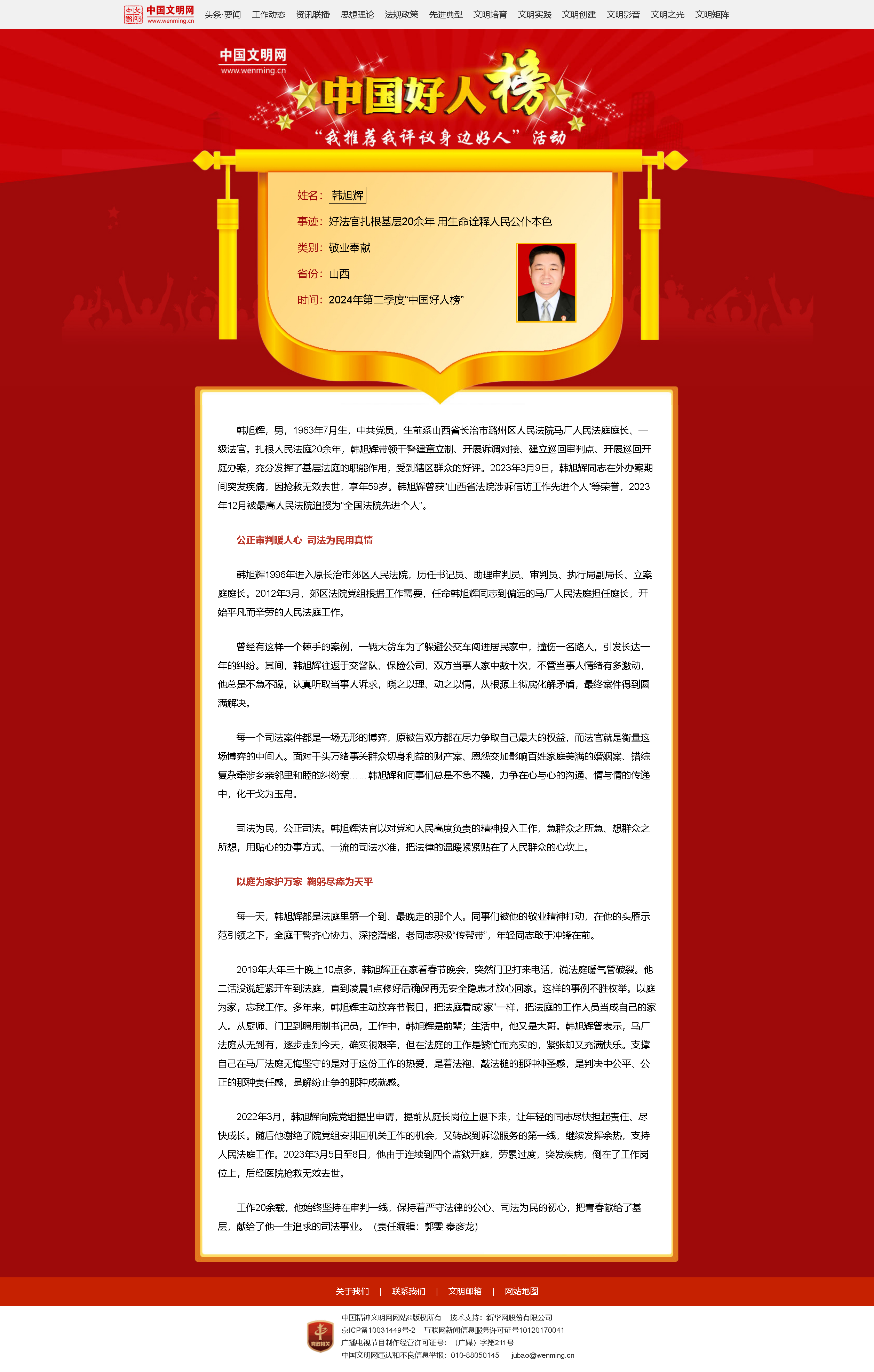 新華社太原7月30日電(記者李子怡)7月30日,2024年第二季度“中國好人榜”發(fā)布儀式暨全國道德模范與身邊好人現(xiàn)場交流活動在山西省大同市舉辦。經(jīng)各地推薦、網(wǎng)友評議和專家評審等環(huán)節(jié),共有153人(組)助人為樂、見義勇為、誠實守信、敬業(yè)奉獻(xiàn)、孝老愛親身邊好人光榮上榜。