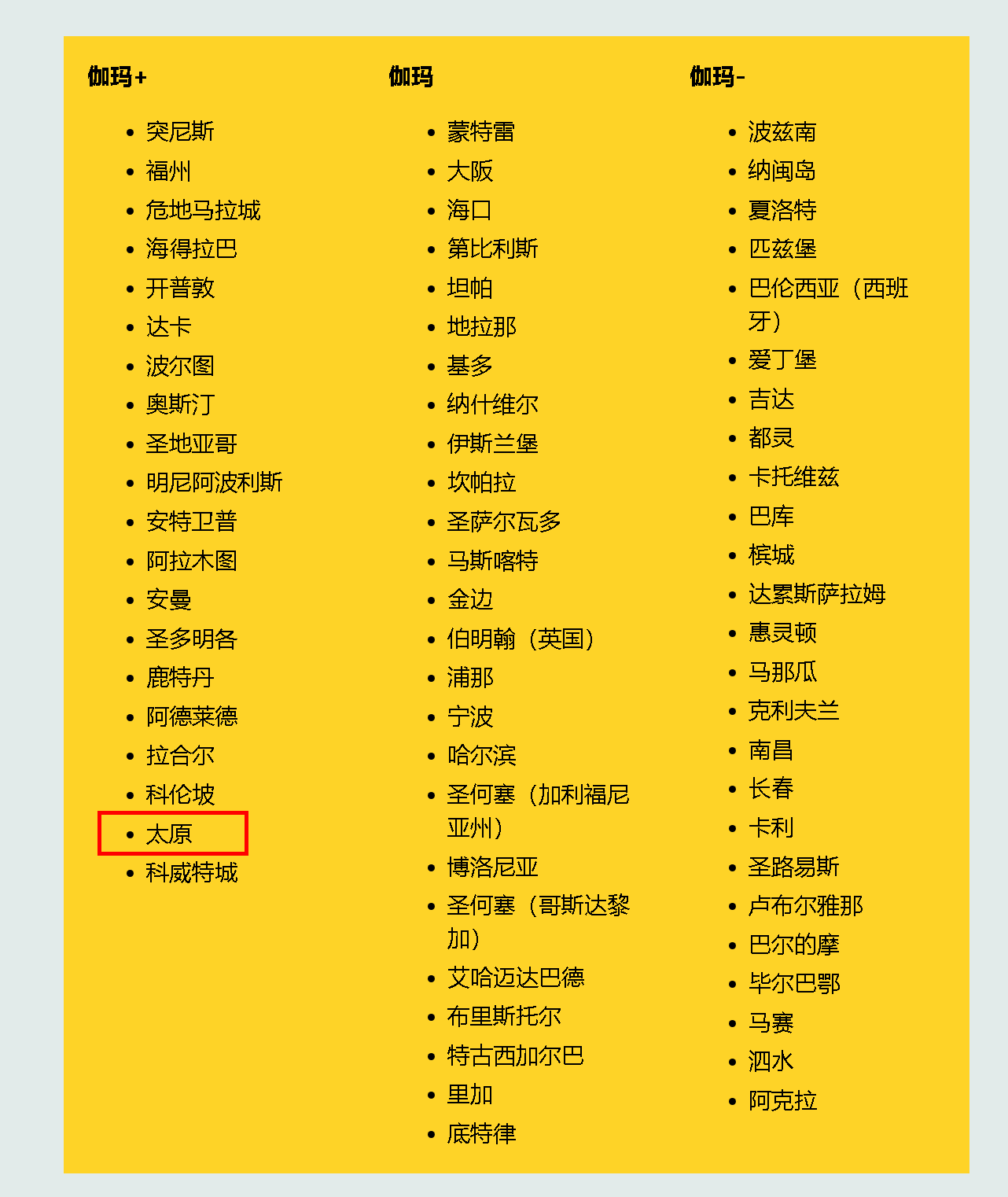 世界晉商網(wǎng)注意到,在Gamma級城市中,太原升級為了Gamma+城市,也就是世界強三線城市。