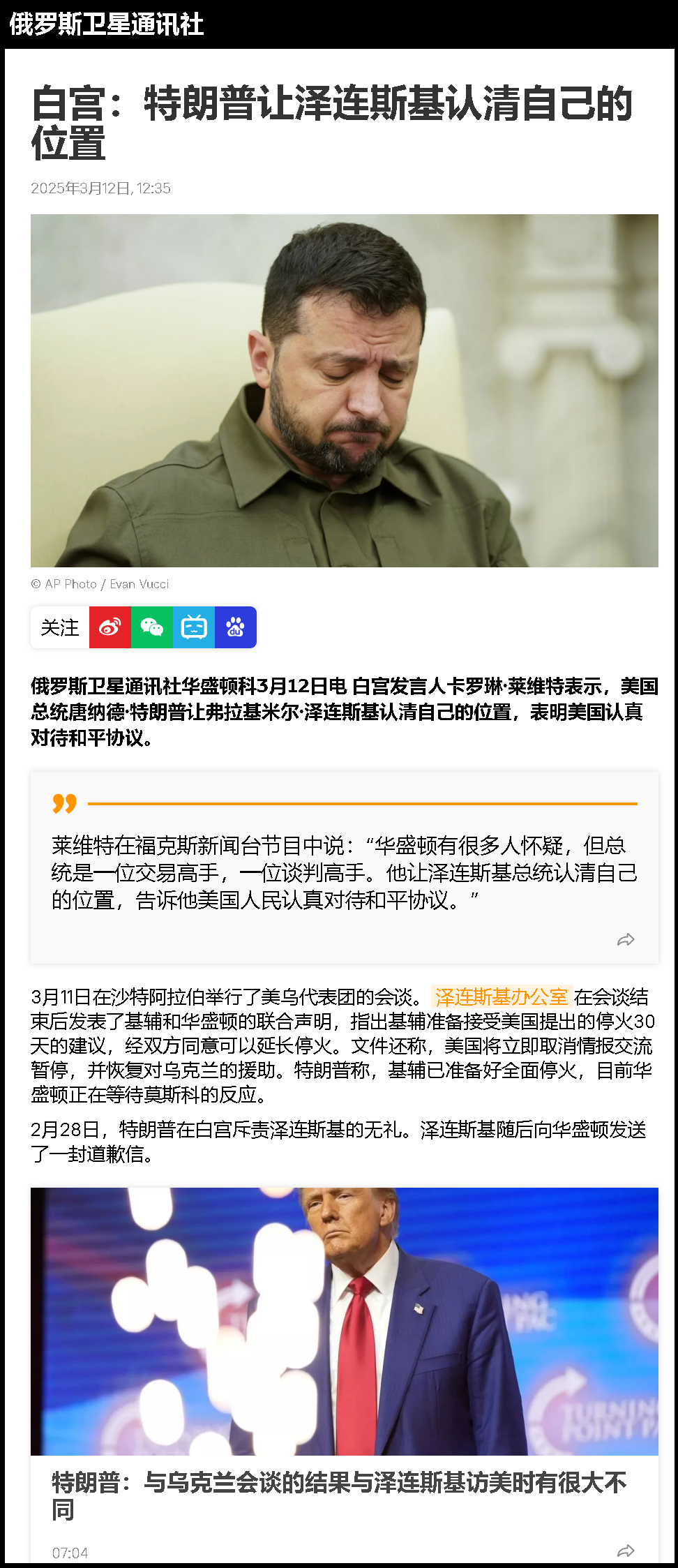 烏克蘭總統(tǒng)澤連斯基當(dāng)晚在社交媒體上發(fā)文說,烏美吉達(dá)會談效果“良好且富有建設(shè)性”。烏方愿意接受美方30天?;鸬奶嶙h,但需要美方說服俄方采取相同措施,“如果俄方同意,?;饘⒘⒓瓷А?。