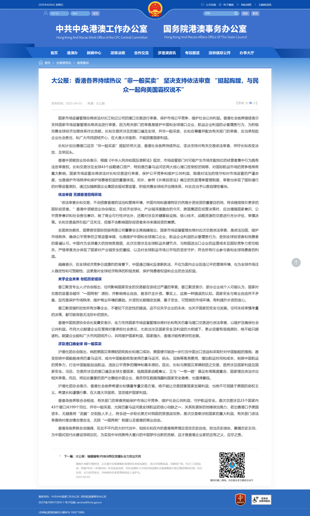 最近,有一件事在香港商界掀起了不小的波瀾。中共中央港澳辦官網轉載了《大公報》的評論,直接把李嘉誠家族企業(yè)長和集團給“點”了出來了,批評它拋售港口的行為,說這可能關系到國家的戰(zhàn)略的利益。這消息一出來,大家都在紛紛猜測,這背后到底是怎么回事呢?