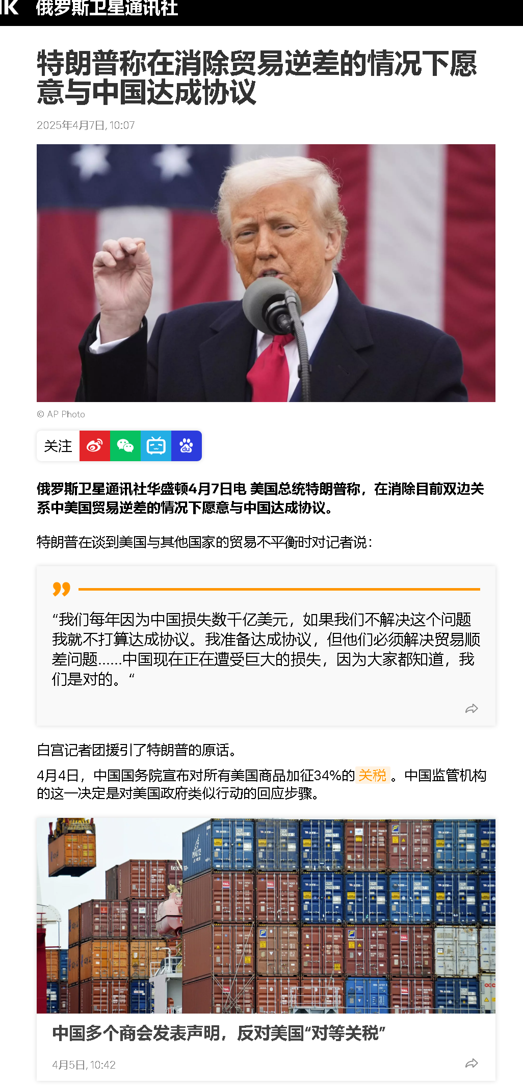 當(dāng)特朗普政府揮舞"對(duì)等關(guān)稅"大棒時(shí),其本質(zhì)是企圖用19世紀(jì)的殖民邏輯重構(gòu)21世紀(jì)的全球經(jīng)貿(mào)秩序。中國(guó)以精準(zhǔn)反制破局,不僅捍衛(wèi)了國(guó)家利益,更掀起了全球治理體系變革的浪潮。在這場(chǎng)重塑世界經(jīng)濟(jì)秩序的博弈中,中國(guó)以"開放型反制"戰(zhàn)略,構(gòu)建起多邊主義新范式??梢哉f,可能連特朗普都萬萬沒有想到,我國(guó)的反制這么的“快很準(zhǔn)”。或許是迫于國(guó)內(nèi)民眾的壓力,特朗普的關(guān)稅態(tài)度出現(xiàn)轉(zhuǎn)變,提出減稅條件:只要美國(guó)和中國(guó)的貿(mào)易逆差問題能夠得到解決,就可以達(dá)到關(guān)稅和解協(xié)議。