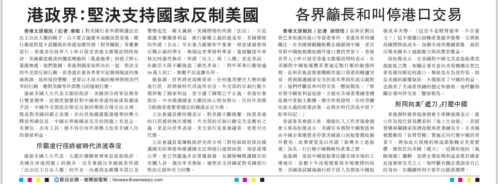 香港菁英會副主席、網絡紅人工作者協(xié)會創(chuàng)會主席高松杰表示,美國宣布將對中國制造和由中國企業(yè)運營并停靠美國港口的船只征收額外費用,此舉實質是以所謂「振興本土造船業(yè)」為名,行打壓中國戰(zhàn)略性產業(yè)之實。