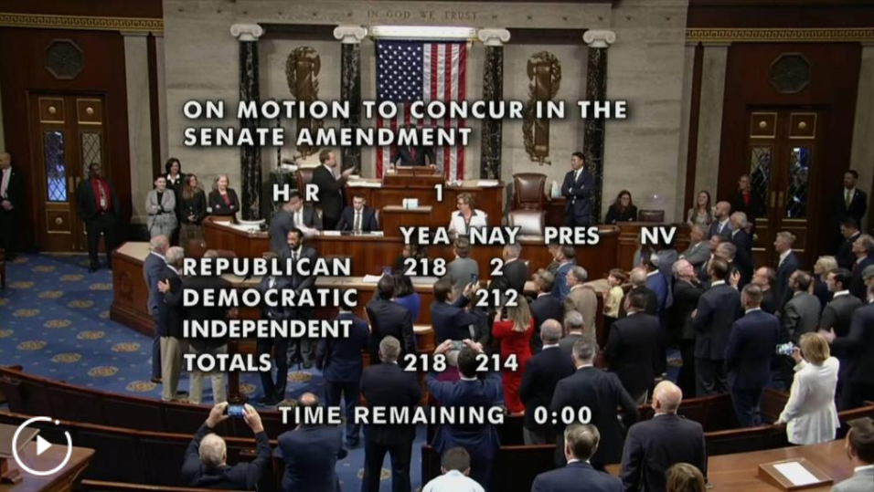 新華社紐約7月3日電 美國國會眾議院3日下午以218票贊成、214票反對的表決結(jié)果通過了總統(tǒng)特朗普推動的“大而美”稅收與支出法案。