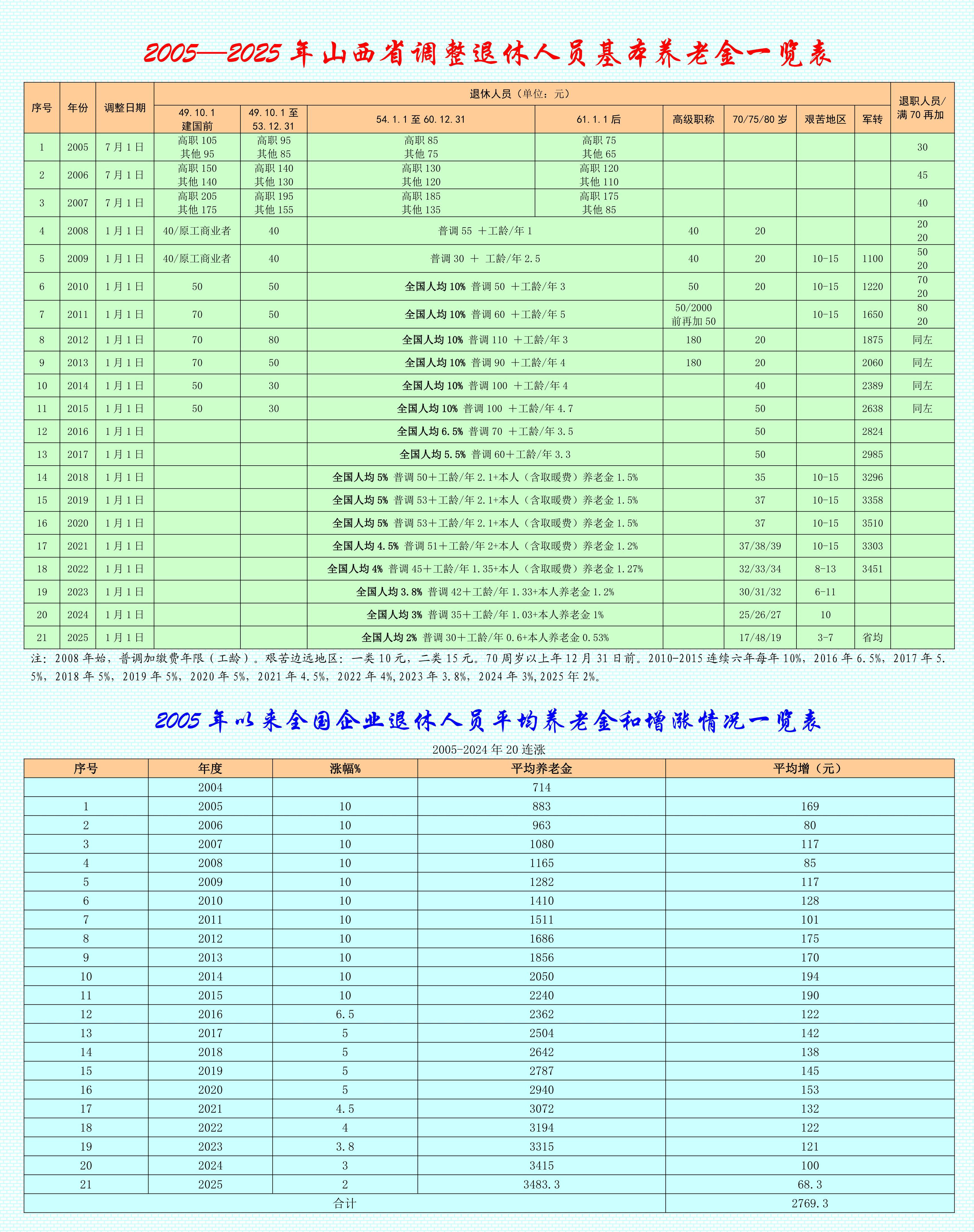 按照人力資源社會保障部、財政部《關(guān)于2025年調(diào)整退休人員基本養(yǎng)老金的通知》(人社部發(fā)〔2025〕38號)精神,經(jīng)省政府同意,并向人社部、財政部報備,從2025年1月1日起調(diào)整退休人員基本養(yǎng)老金水平,現(xiàn)將有關(guān)事項通知如下: