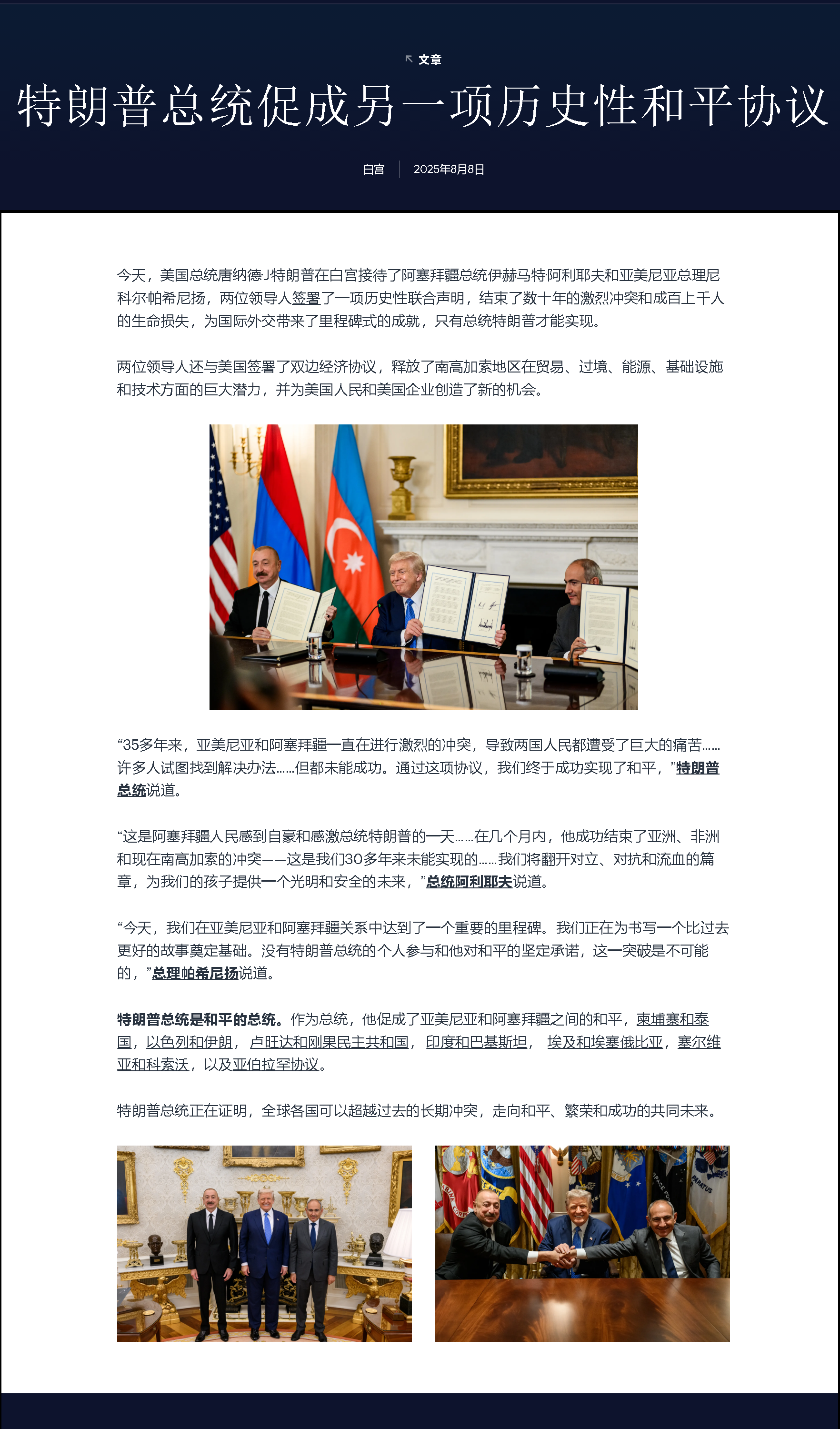 阿利耶夫當天告訴阿塞拜疆媒體,預計協(xié)議的正式簽署“應該不需要很長時間”。