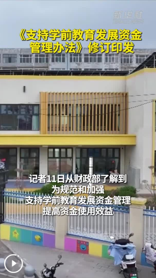新華社北京8月11日電(記者申鋮)記者11日從財政部了解到,為規(guī)范和加強支持學(xué)前教育發(fā)展資金管理,提高資金使用效益,財政部、教育部修訂印發(fā)了《支持學(xué)前教育發(fā)展資金管理辦法》。