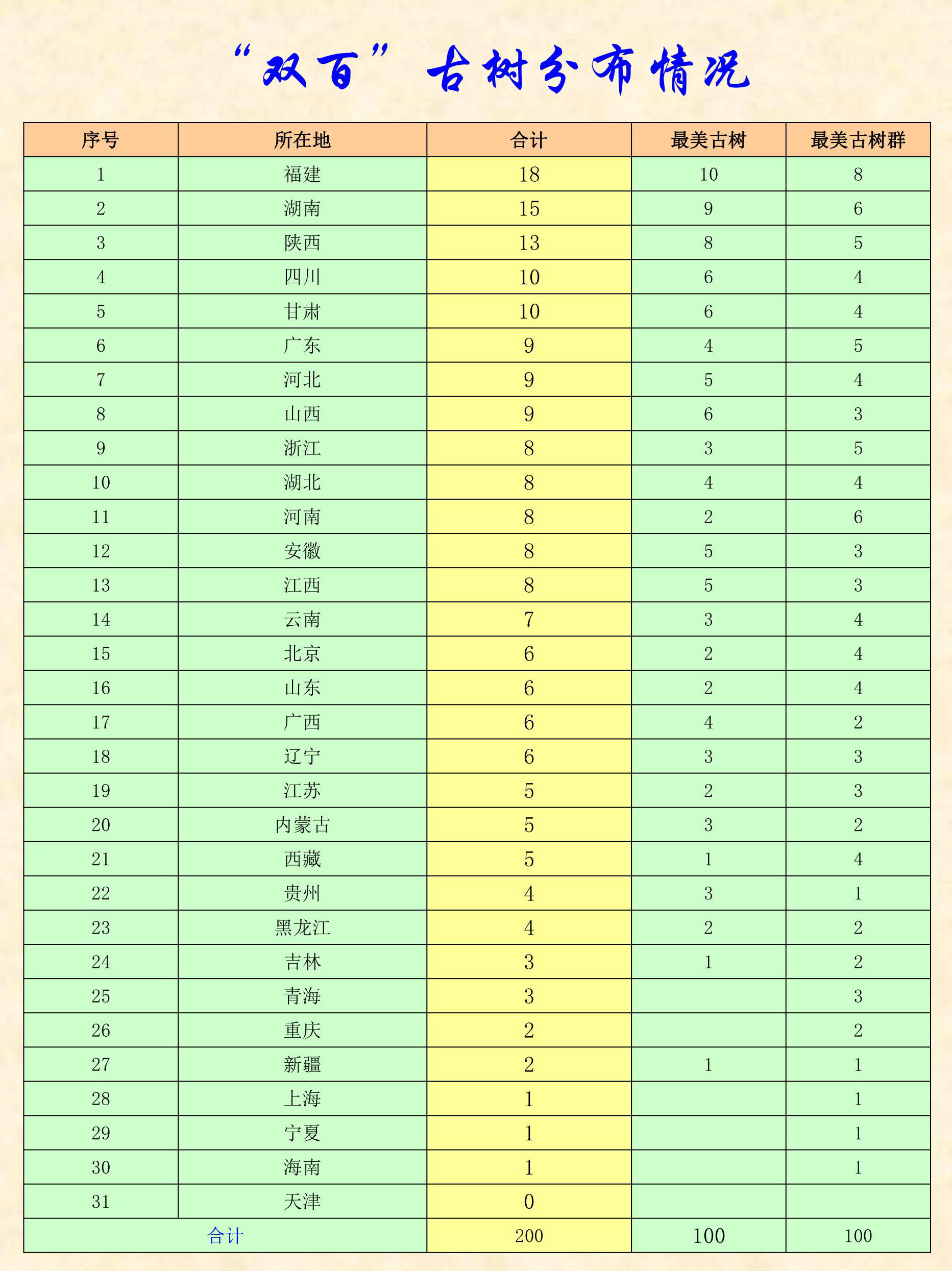 100株最美古樹(shù)名單