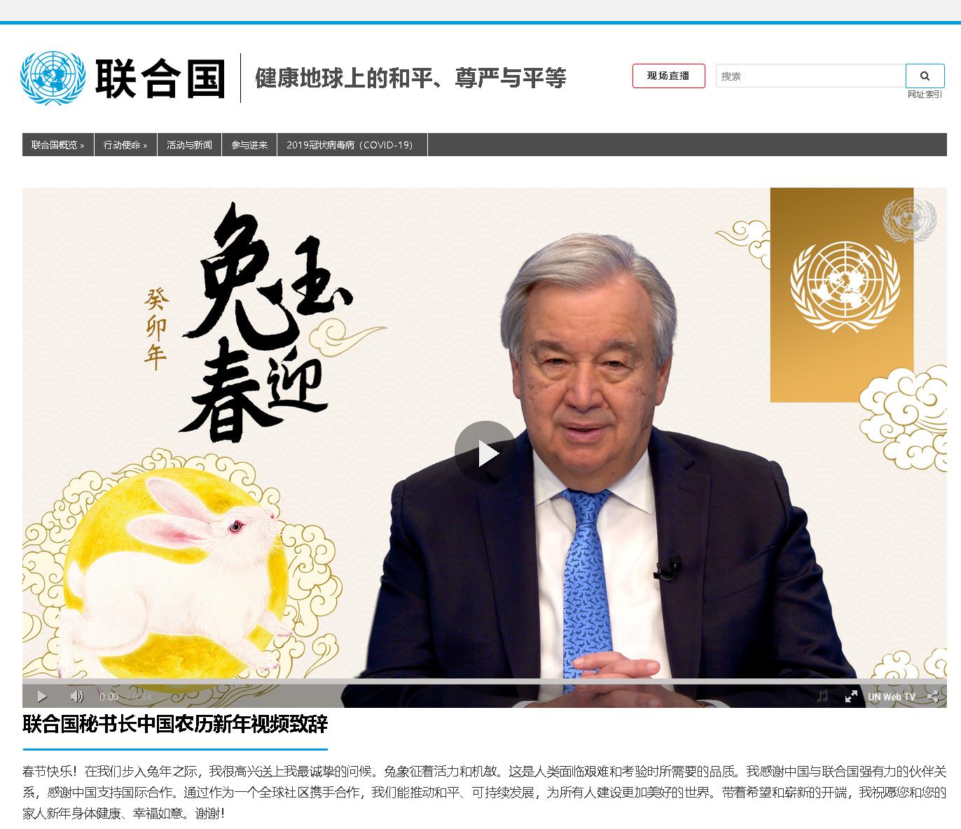 [新聞直播間]聯(lián)合國秘書長(zhǎng)祝福中國人民新春快樂