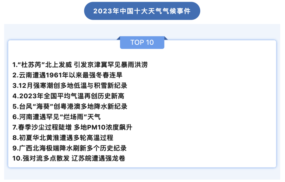 國家氣候中心副主任賈小龍表示,2023年赤道中東太平洋經(jīng)歷了“三重”拉尼娜向中等強(qiáng)度厄爾尼諾的快速轉(zhuǎn)變。我國暖干氣候特征明顯,極端天氣頻發(fā)強(qiáng)發(fā),出現(xiàn)諸多破紀(jì)錄事件。