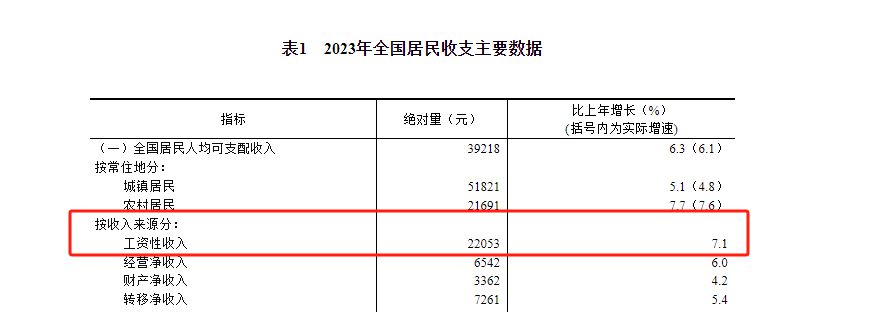 工資與就業(yè)息息相關(guān)。張毅指出,2023年,經(jīng)濟(jì)回升向好,就業(yè)形勢(shì)總體穩(wěn)定,居民就業(yè)機(jī)會(huì)增多,從業(yè)時(shí)間增加,保障了居民工資性收入增長(zhǎng)。全國(guó)居民人均工資性收入比上年增長(zhǎng)7.1%,增速快于上年2.2個(gè)百分點(diǎn),也快于全國(guó)居民收入增速0.8個(gè)百分點(diǎn)。