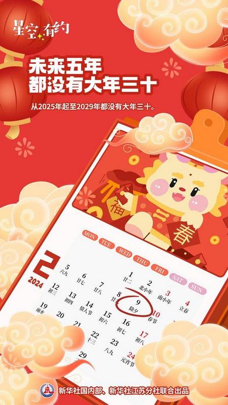 2月9日將迎來大年三十。翻開日歷你會發(fā)現(xiàn),2024年是未來幾年中最后一個有大年三十的年份。2025年至2029年的5年里,都沒有大年三十,大年二十九過后,就將迎來大年初一。大年三十去哪兒了?為什么大年三十會時不時“玩消失”,大年初一從不“缺席”?天文科普專家為您解惑。