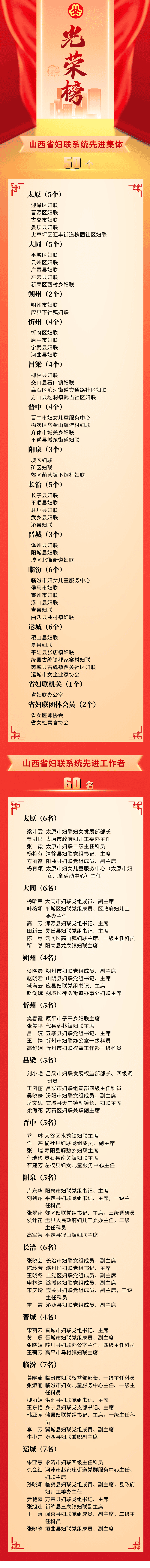 祝賀!山西省婦聯(lián)系統(tǒng)先進(jìn)集體(先進(jìn)工作者)名單揭曉
