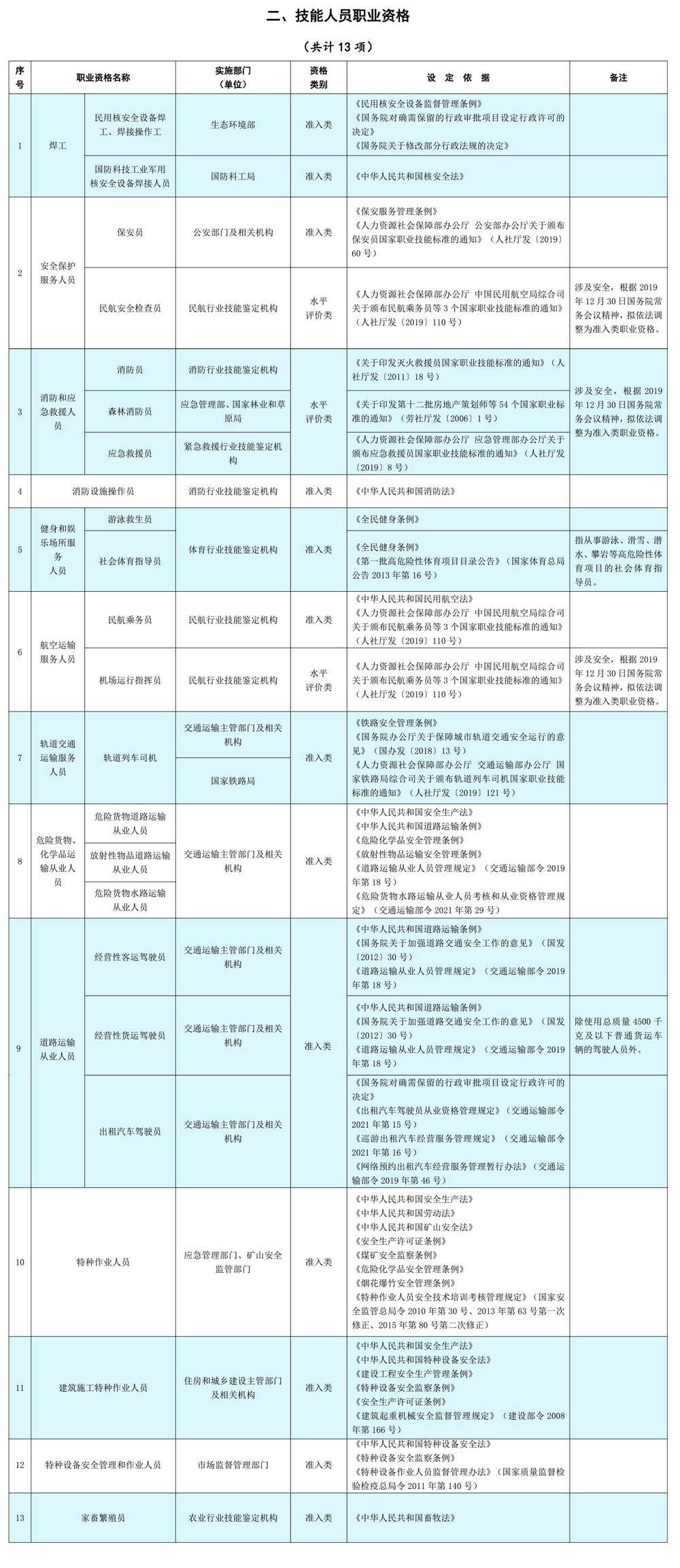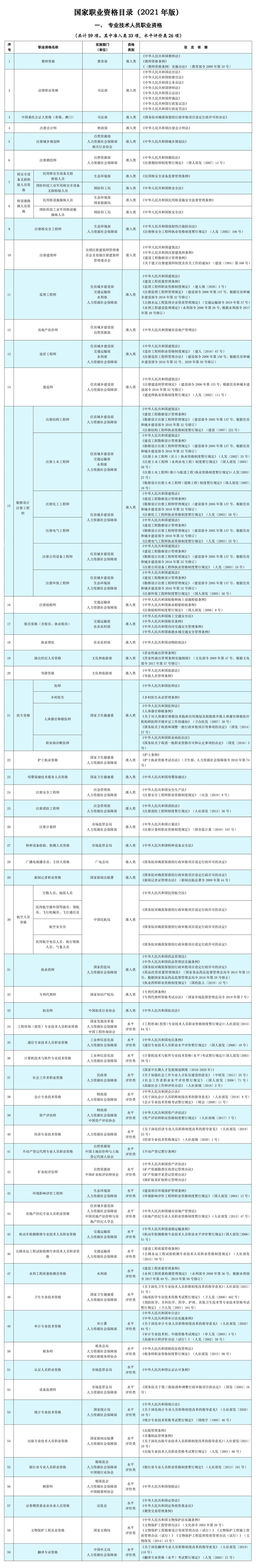根據(jù)國務(wù)院推進簡政放權(quán)、放管結(jié)合、優(yōu)化服務(wù)改革要求,人力資源社會保障部會同國務(wù)院有關(guān)部門對《國家職業(yè)資格目錄》進行優(yōu)化調(diào)整,形成了《國家職業(yè)資格目錄(2021年版)》,經(jīng)國務(wù)院同意,現(xiàn)予以公布。