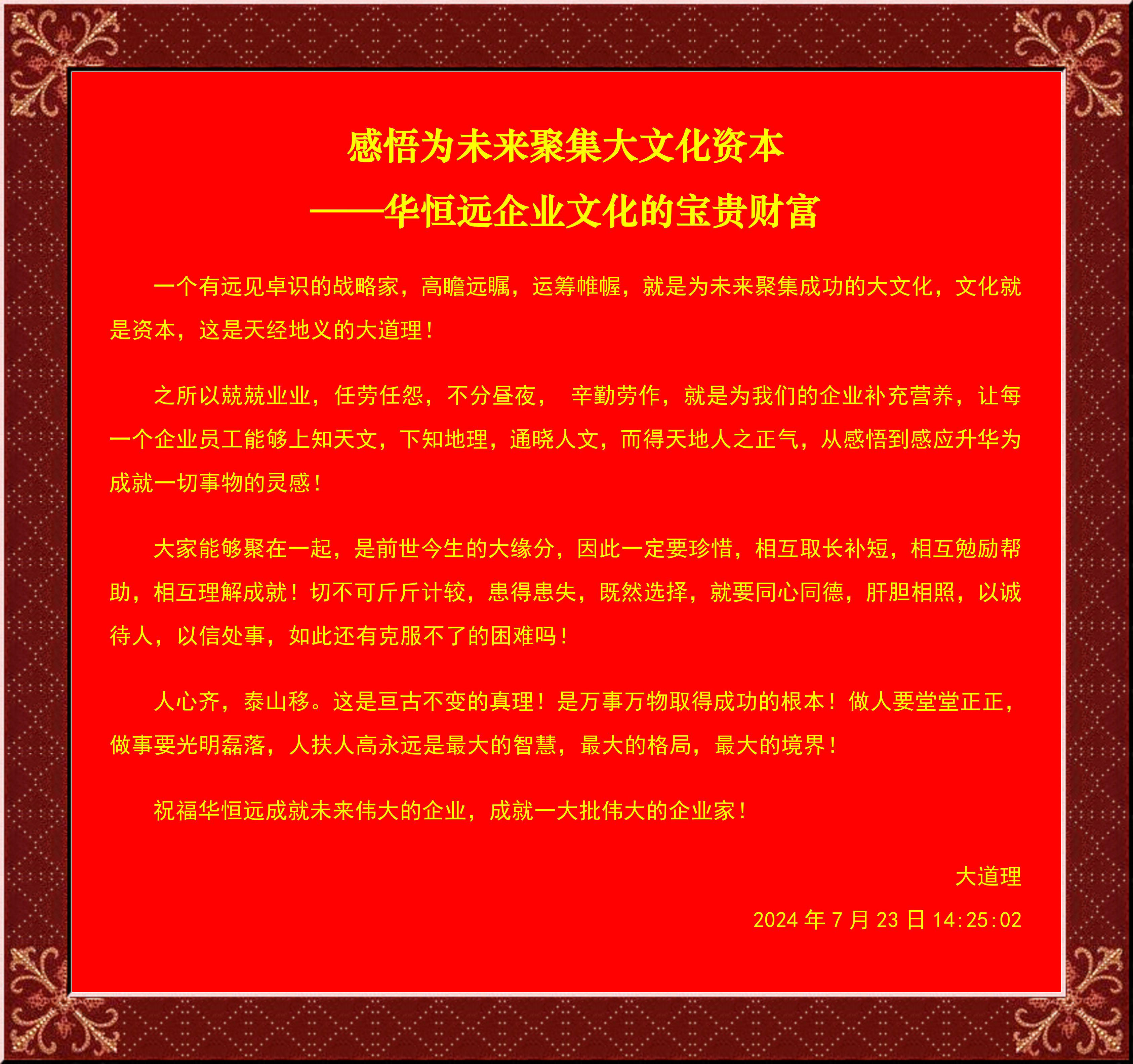 祝福華恒遠成就未來偉大的企業(yè),成就一大批偉大的企業(yè)家!