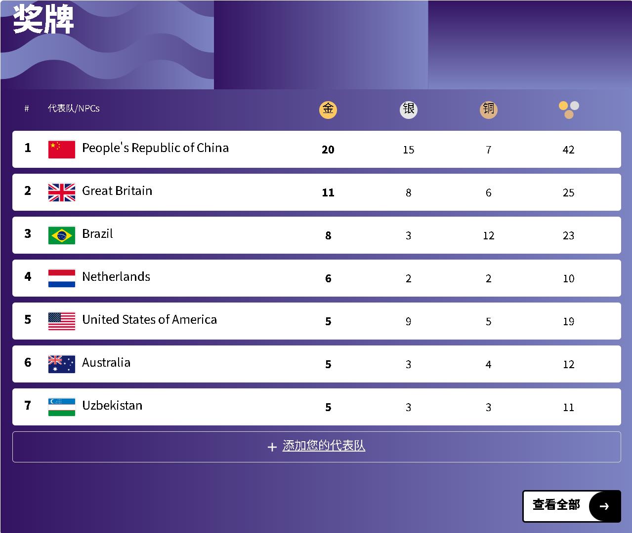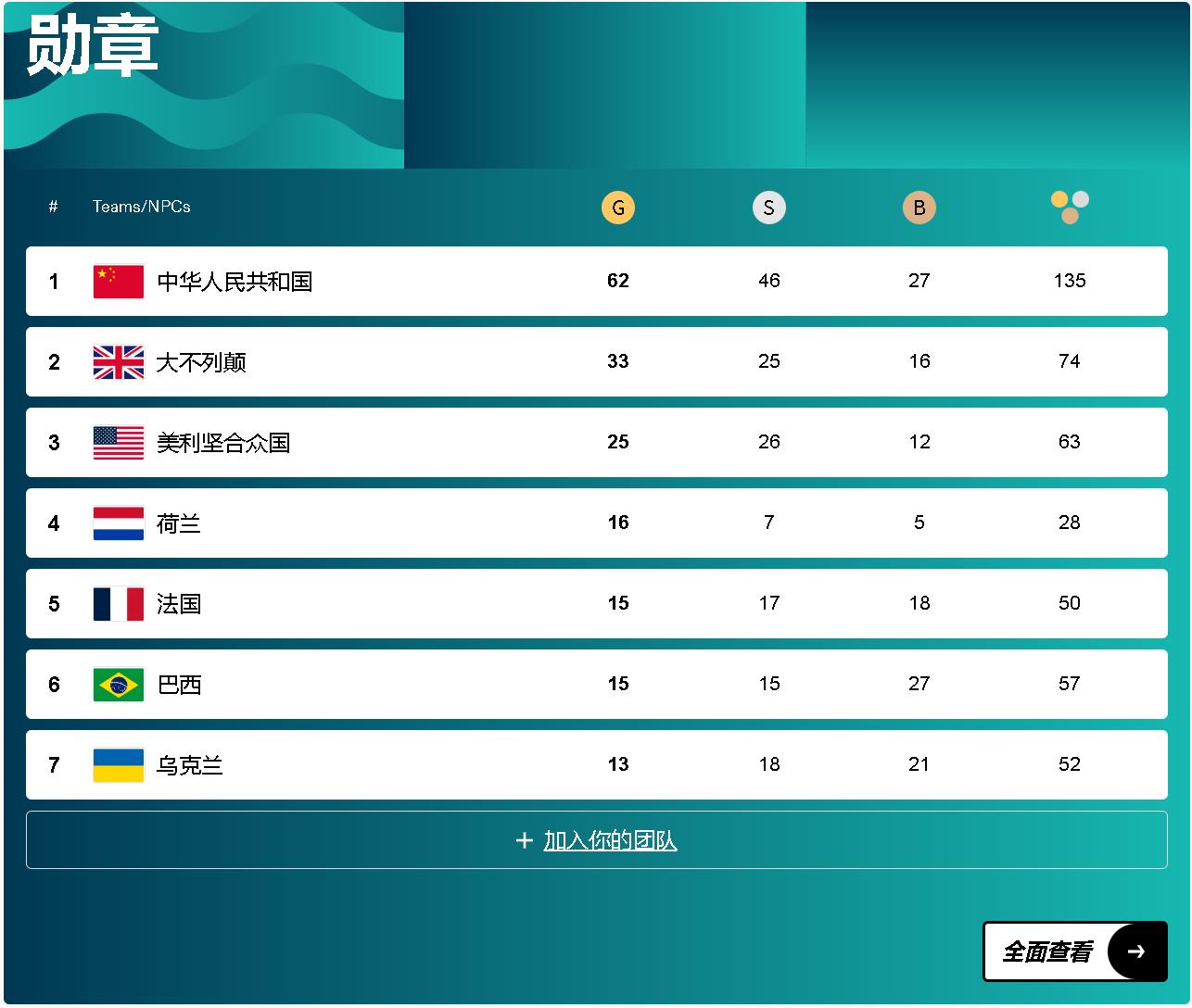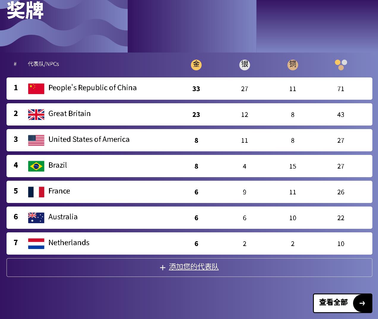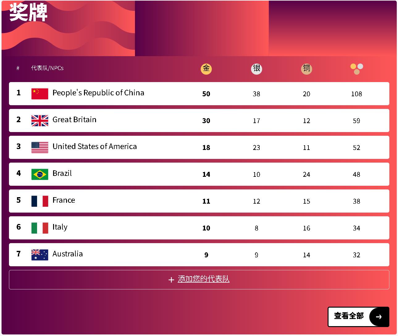 金牌(41枚)