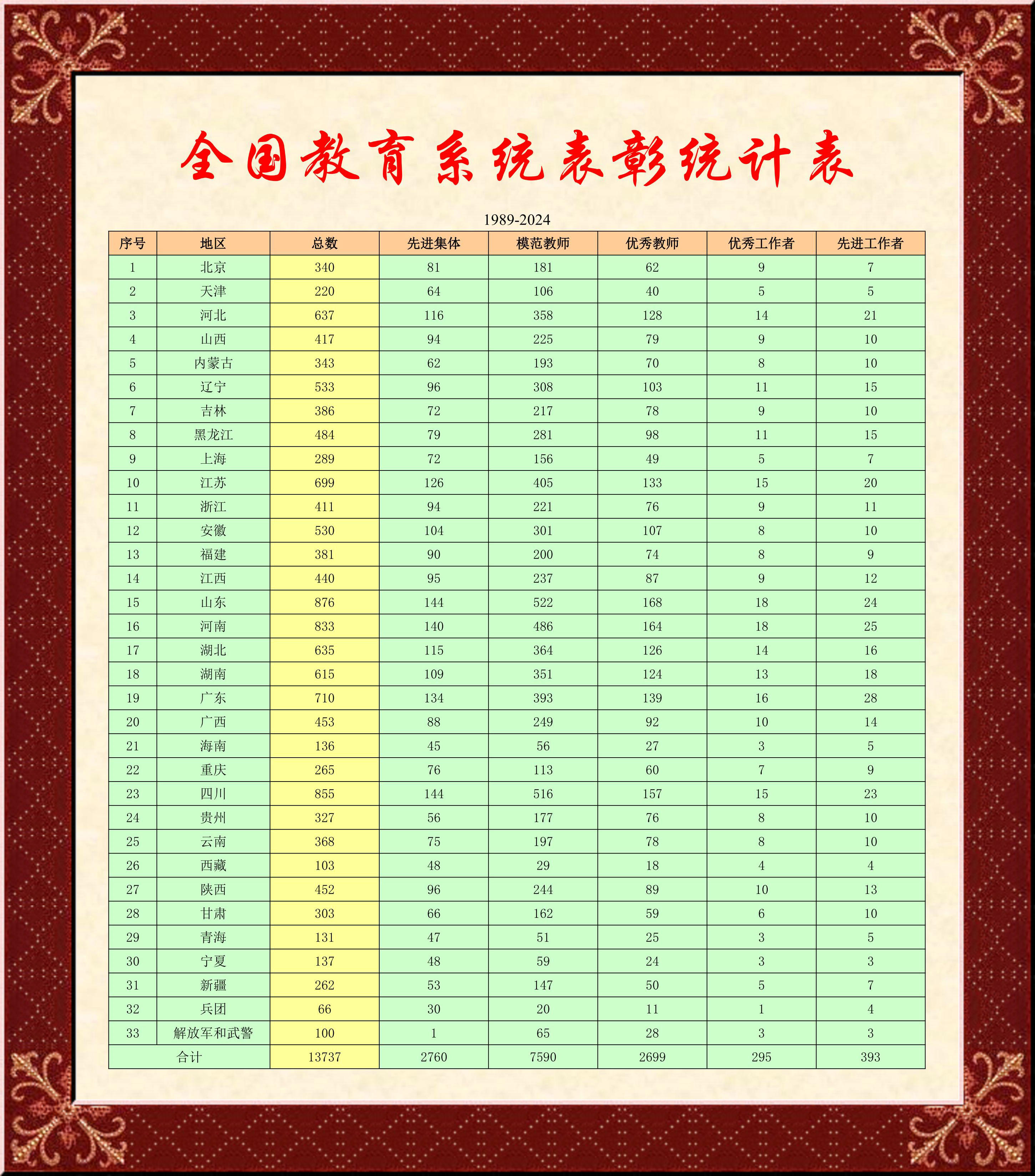 山西省榮獲全國教育系統(tǒng)先進(jìn)集體模范教師和先進(jìn)工作者名錄