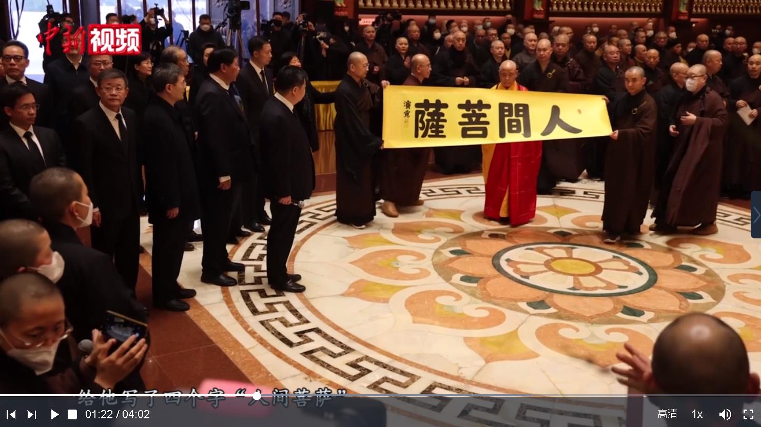 【解說(shuō)】星云法師圓寂后,中國(guó)佛教協(xié)會(huì)會(huì)長(zhǎng)演覺(jué)長(zhǎng)老寫(xiě)下了“人間菩薩”四個(gè)字。