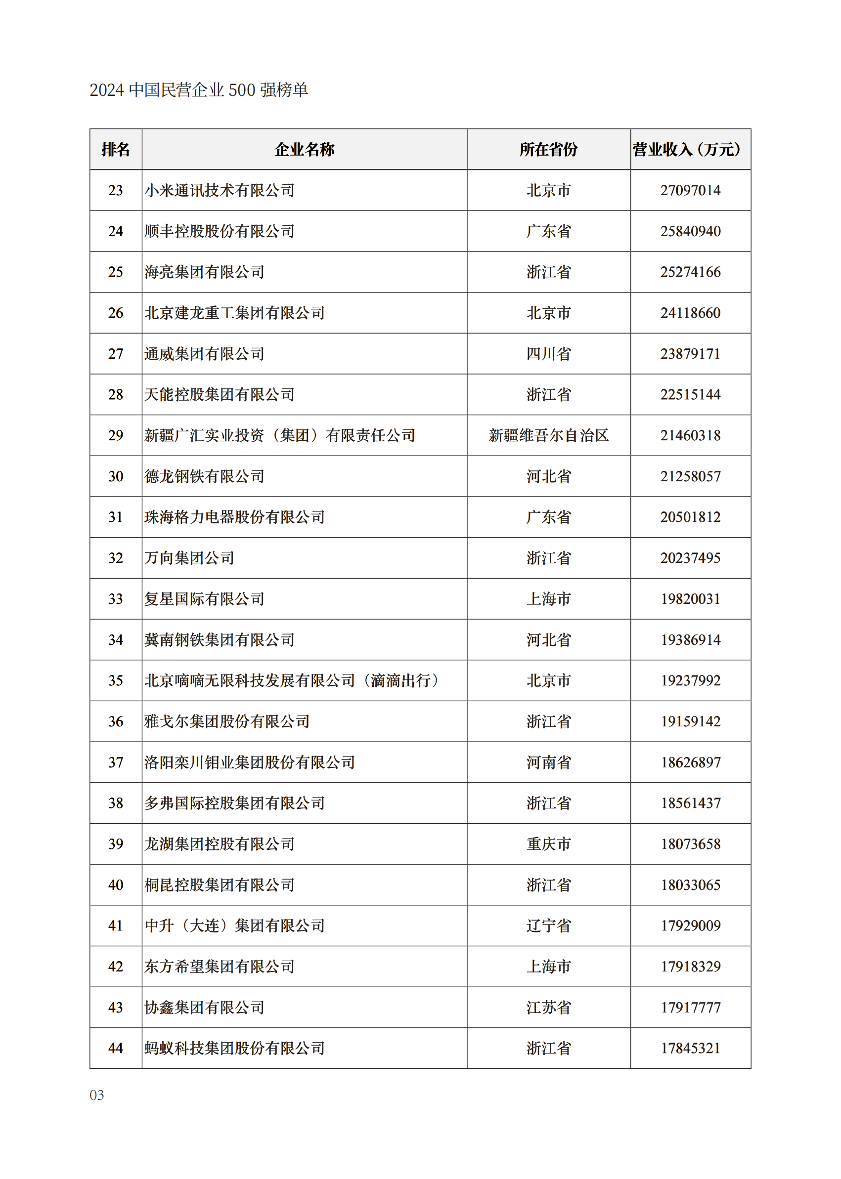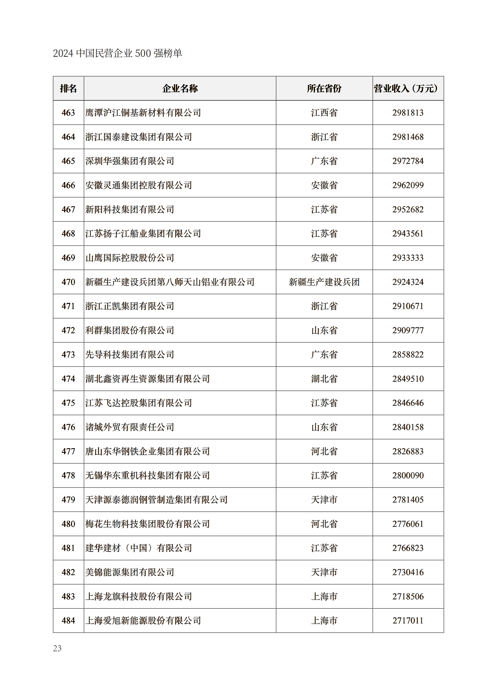 【行業(yè)資料】2023中國(guó)民營(yíng)企業(yè)500強(qiáng)榜單