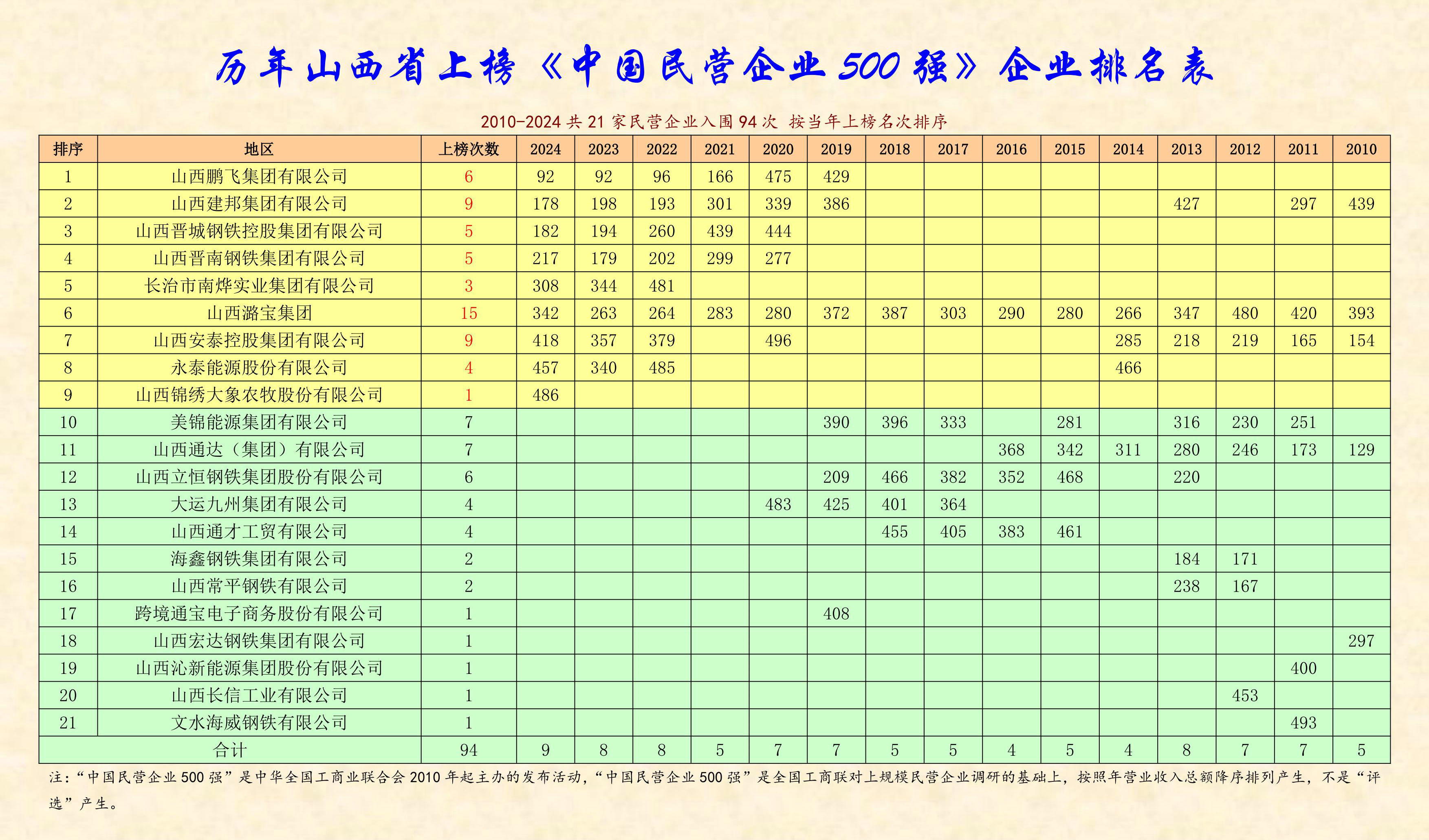 【學(xué)習(xí)園地】山西省上榜中國(guó)民營(yíng)企業(yè)500強(qiáng)名錄