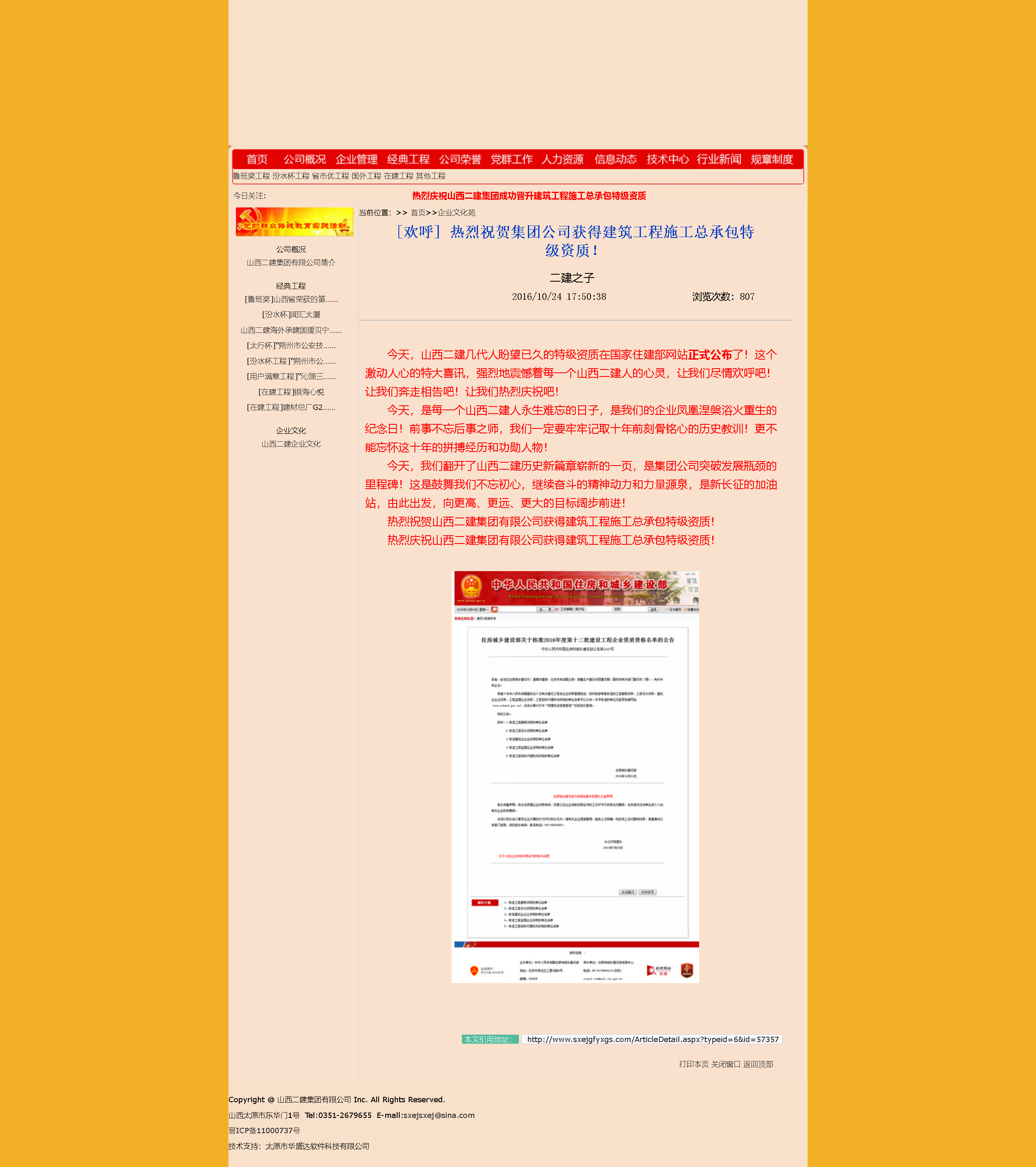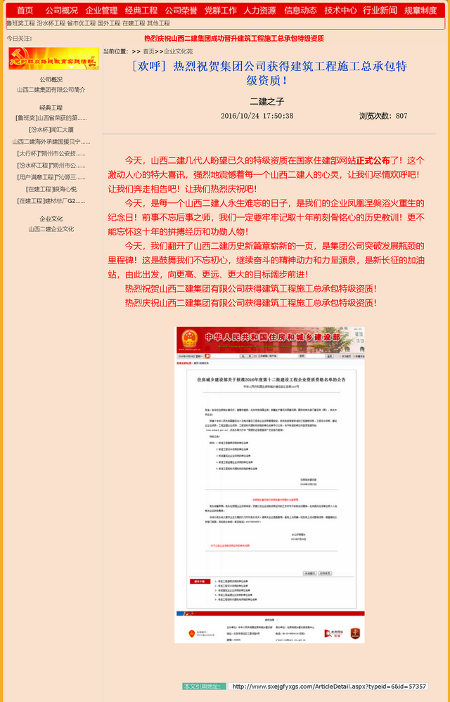 熱烈慶祝山西二建集團(tuán)有限公司獲得建筑工程施工總承包特級資質(zhì)!