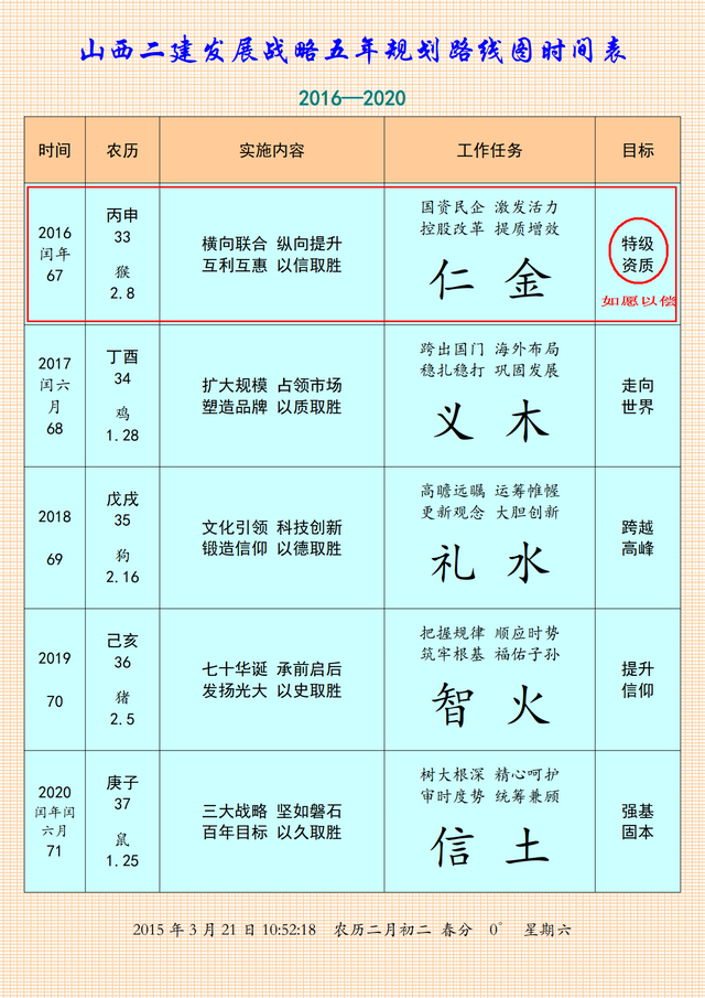 2011年1月5日第一次與山西二建第一任掌門人會悟,2015年1月5日山西二建集團(tuán)有限公司掛牌成立,2016年獲得住建部核準(zhǔn)的建筑工程總承包特級資質(zhì),完美實(shí)現(xiàn)了《思考》第一階段的戰(zhàn)略目標(biāo)!——這就是天機(jī)!
