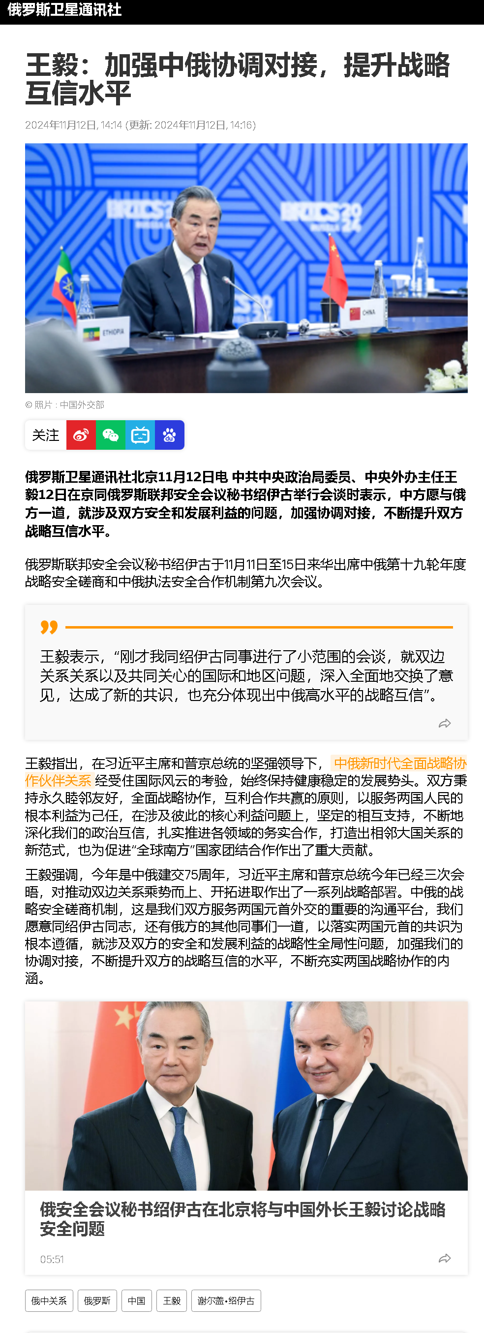 當(dāng)然,不管美國未來的政策會(huì)如何,中方的立場(chǎng)都不會(huì)變。既然普京這次會(huì)派紹伊古來華,就說明俄方對(duì)中國非常重視,中方自然也會(huì)繼續(xù)為推動(dòng)俄烏政治解決沖突而努力。