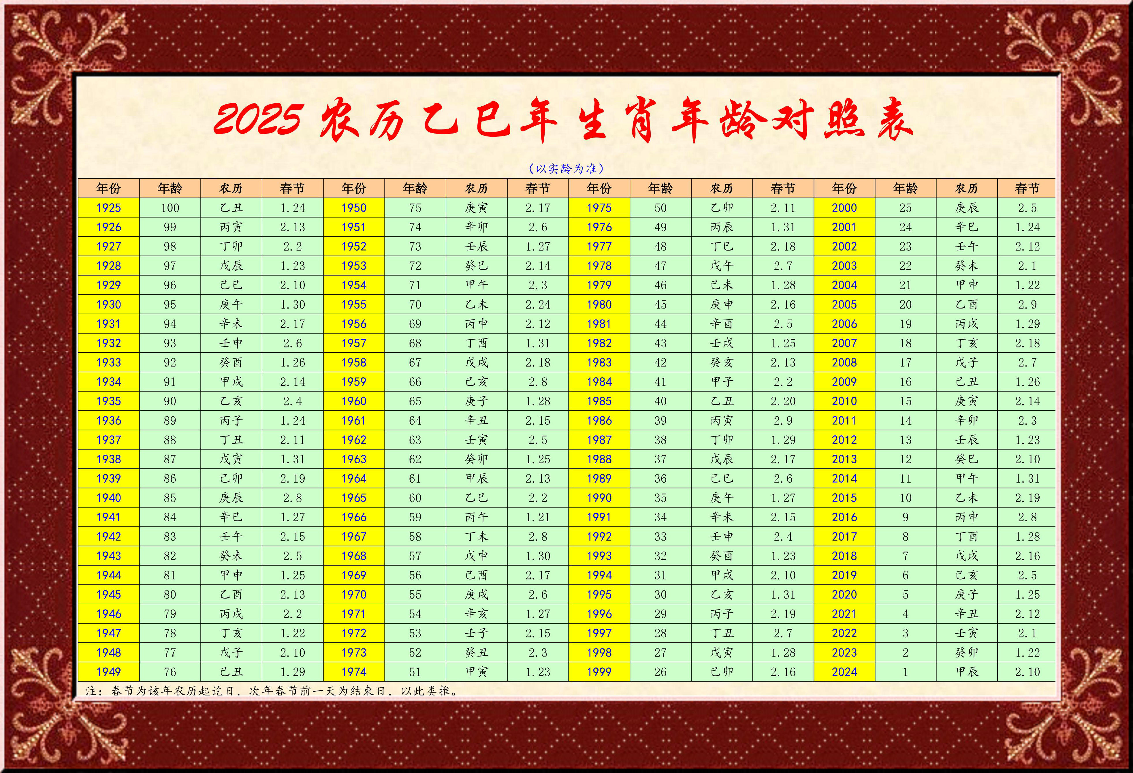 感悟2025年乙巳年十二生肖年齡對(duì)照表