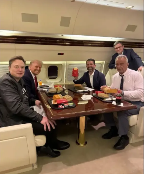 在飛機(jī)上吃飯的時候,美國眾議院院長,政治意義上的三把手約翰遜站著,而馬斯克不僅坐著還坐在特朗普身邊。