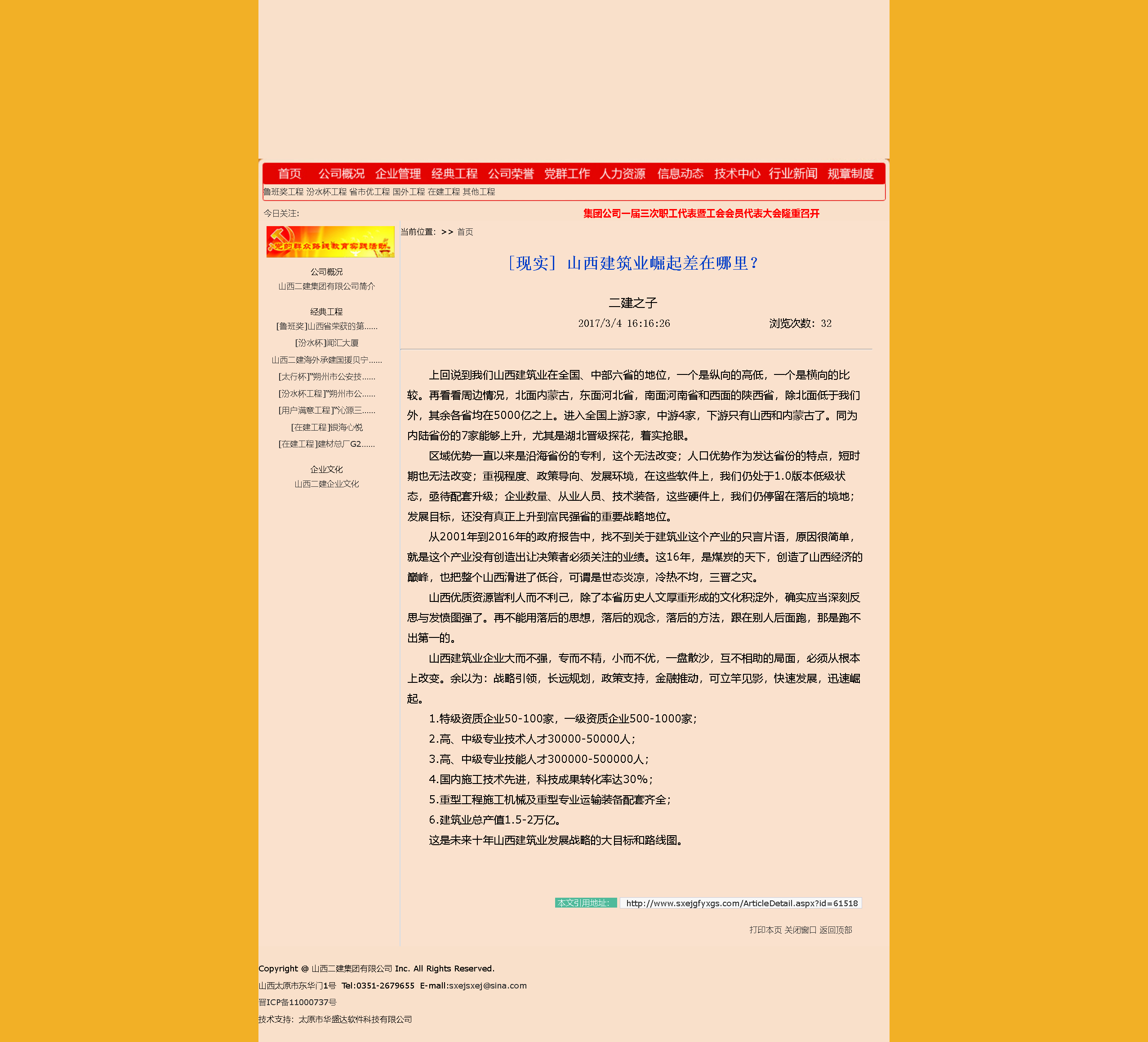 山西二建網(wǎng)站關(guān)閉已經(jīng)有三年多,是什么原因呢?是建投集團(tuán)企業(yè)文化統(tǒng)一的需要,還是其它原因令人費(fèi)解。