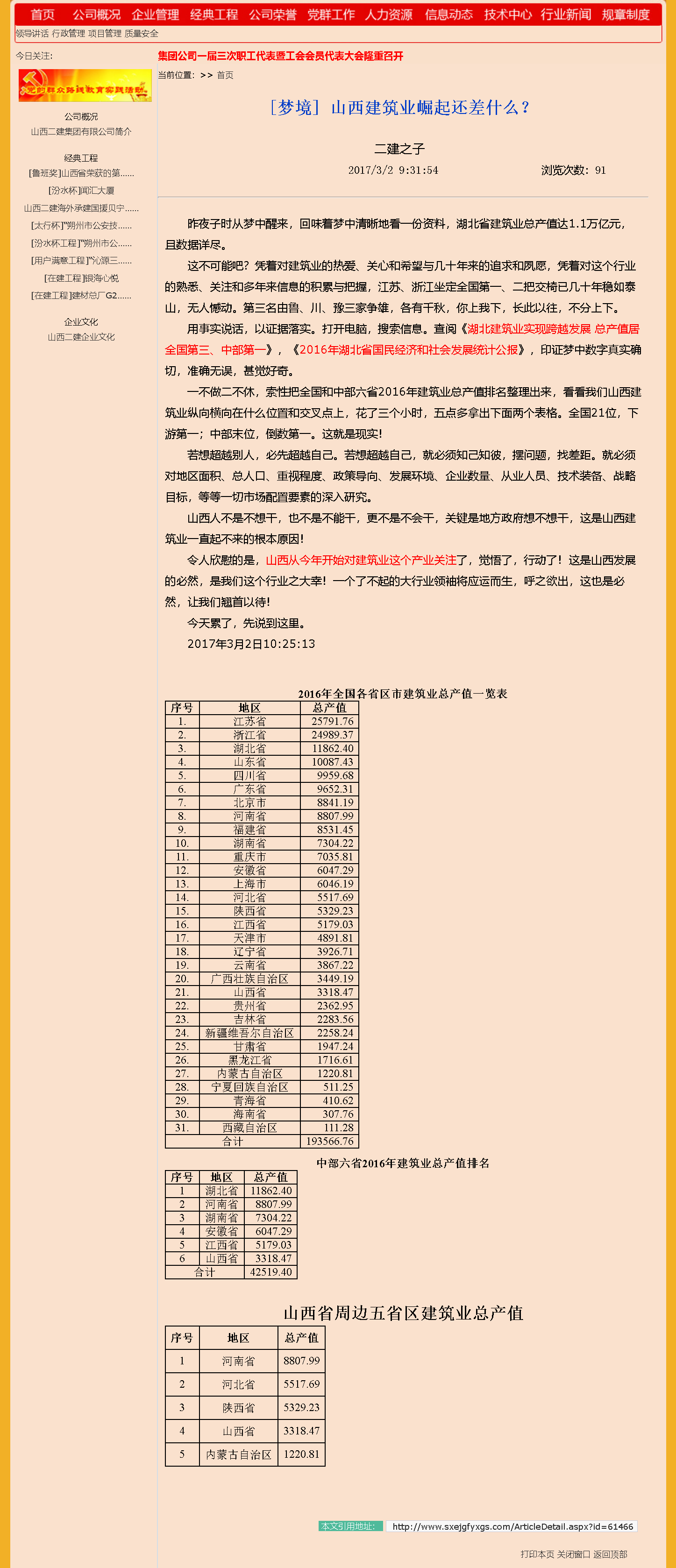一不做二不休,索性把全國(guó)和中部六省2016年建筑業(yè)總產(chǎn)值排名整理出來(lái),看看我們山西建筑業(yè)縱向橫向在什么位置和交叉點(diǎn)上,花了三個(gè)小時(shí),五點(diǎn)多拿出下面兩個(gè)表格。全國(guó)21位,下游第一;中部末位,倒數(shù)第一。這就是現(xiàn)實(shí)!
