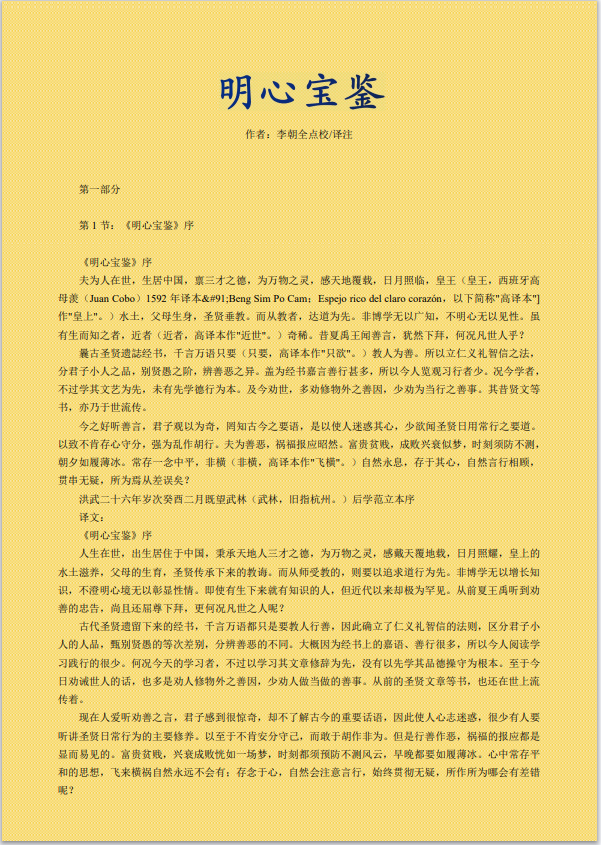 十年前,我把《明心寶鑒》這本書下載打印出來,裝訂好,送給兒子。在扉頁上寫了寄語,希望他能夠清清白白做人,規(guī)規(guī)矩矩做事。做事先做人,做人講規(guī)矩,這是中華文明五千年我們老祖宗的核心思想。