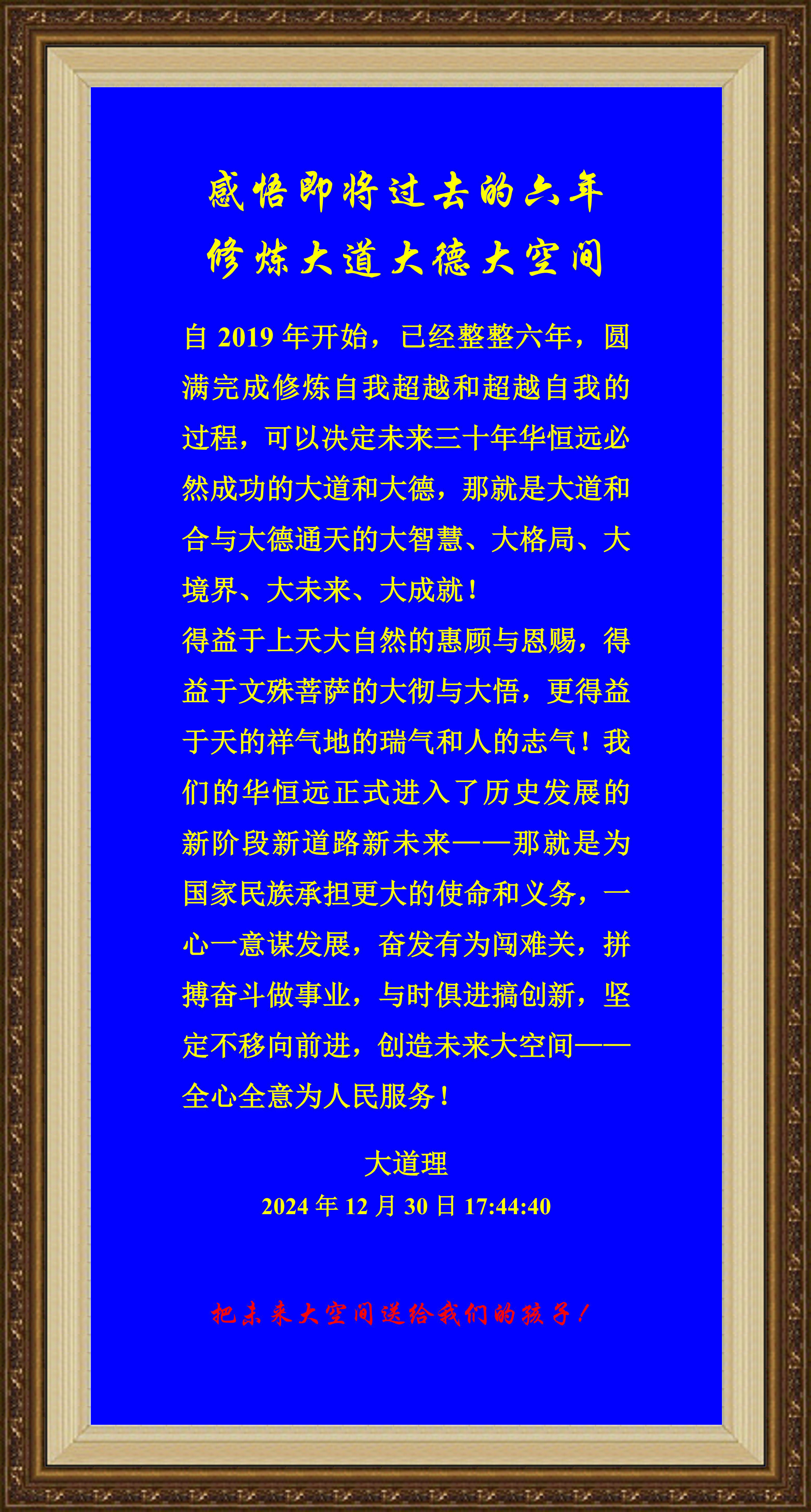 得益于上天大自然的惠顧與恩賜,得益于文殊菩薩的大徹與大悟,更得益于天的祥氣地的瑞氣和人的志氣!我們的華恒遠(yuǎn)正式進(jìn)入了歷史發(fā)展的新階段新道路新未來——那就是為國家民族承擔(dān)更大的使命和義務(wù),一心一意謀發(fā)展,奮發(fā)有為闖難關(guān),拼搏奮斗做事業(yè),與時(shí)俱進(jìn)搞創(chuàng)新,堅(jiān)定不移向前進(jìn),創(chuàng)造未來的大空間——全心全意為人民服務(wù)!