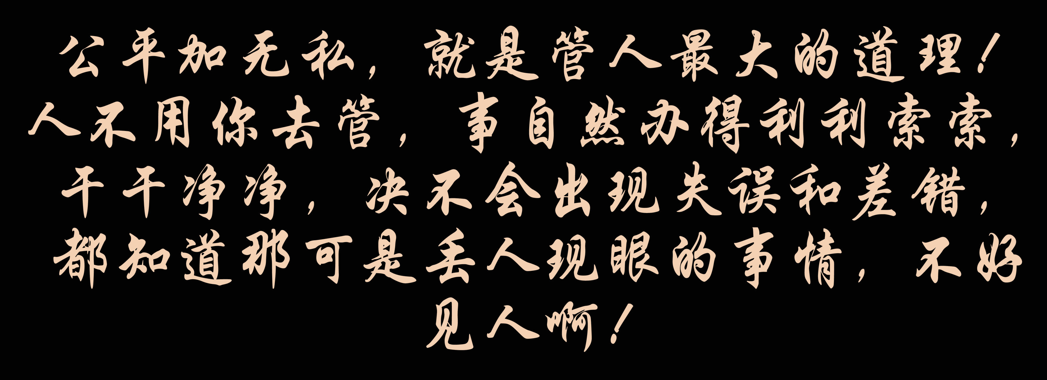公平加無私,就是管人最大的道理!人不用你去管,事自然辦得利利索索,干干凈凈,決不會出現(xiàn)失誤和差錯(cuò),都知道那可是丟人現(xiàn)眼的事情,不好見人?。?/span>