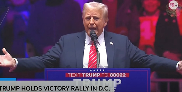當(dāng)?shù)貢r(shí)間1月19日,美國(guó)候任總統(tǒng)特朗普在華盛頓市中心舉行集會(huì)。 視頻截圖