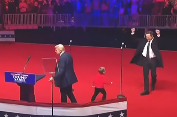 馬斯克帶著他的兒子X ? A-12參加特朗普集會(huì)。 視頻截圖