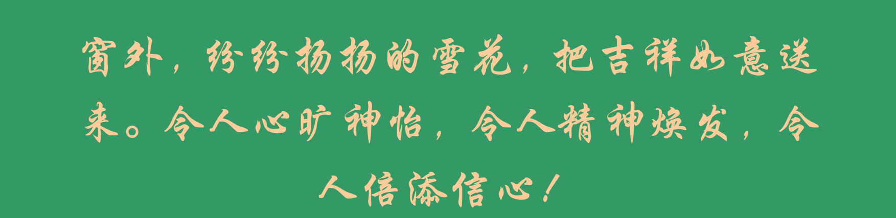 窗外,紛紛揚(yáng)揚(yáng)的雪花,把吉祥如意送來。令人心曠神怡,令人精神煥發(fā),令人倍添信心!