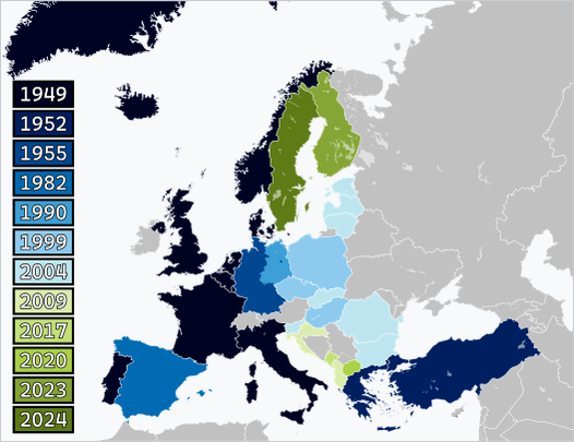 于是在2004年,北約迎來了囊括7個國家的進一步擴張:波羅的海三國(愛沙尼亞、拉脫維亞、立陶宛)、羅馬尼亞、保加利亞、斯洛文尼亞、斯洛伐克。