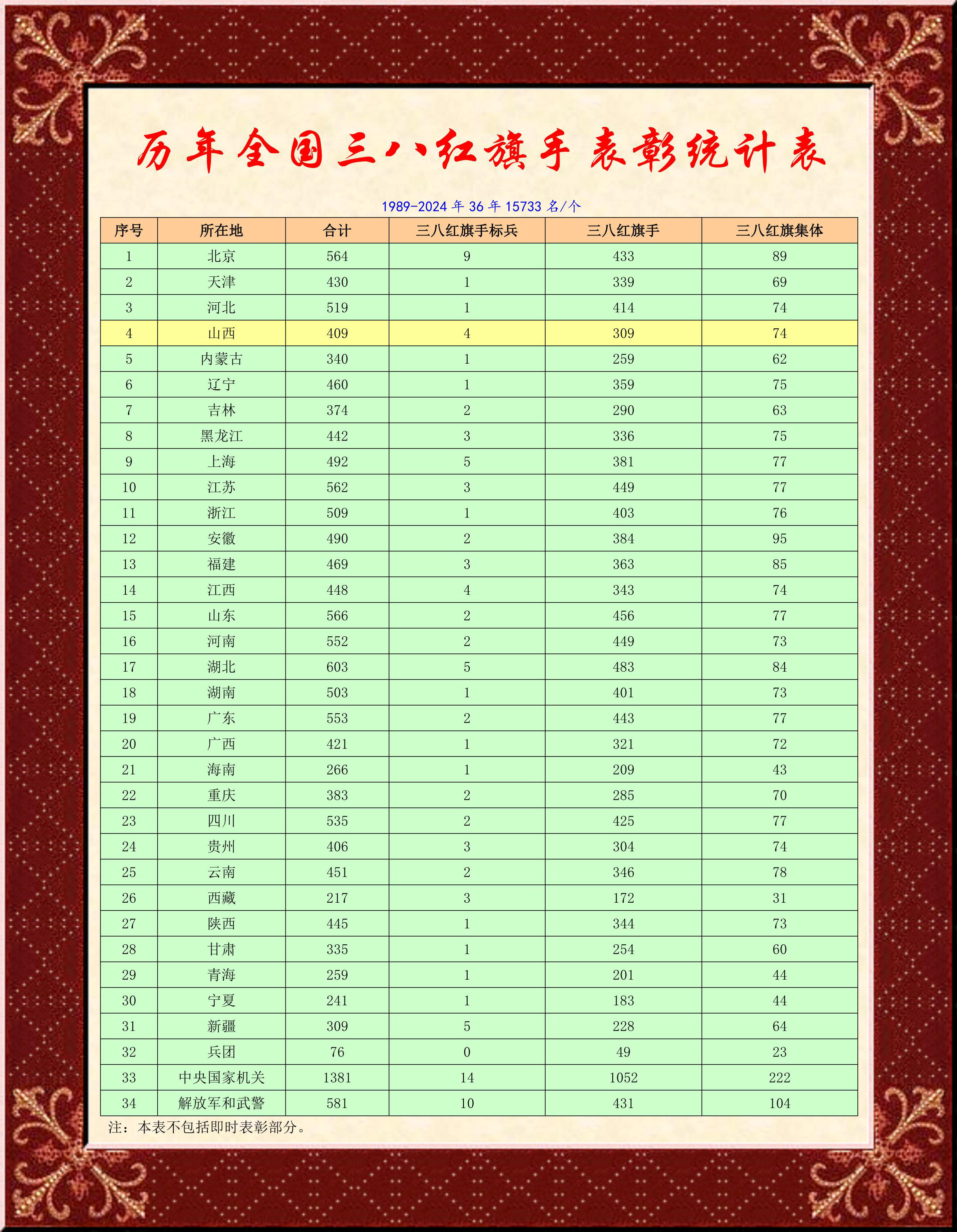 三八紅旗標(biāo)兵4名、三八紅旗手329、三八紅旗集體76個,共計409名/個