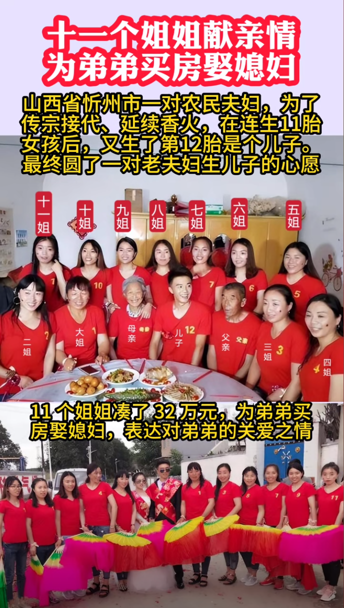 高浩珍辦婚禮,他那 11 個(gè)姐姐都來參加了,這在當(dāng)?shù)乜沙闪艘痪皟?。這事兒經(jīng)報(bào)紙一報(bào)道,好多人就講他們家“重男輕女”,還說“生了兒子不好好養(yǎng),把姐姐們都給耽誤了”。面對這么多人的不理解,那 11 個(gè)姐姐主動出來澄清,她們講:“俺們照顧弟弟是自己樂意的,沒人逼俺們。”