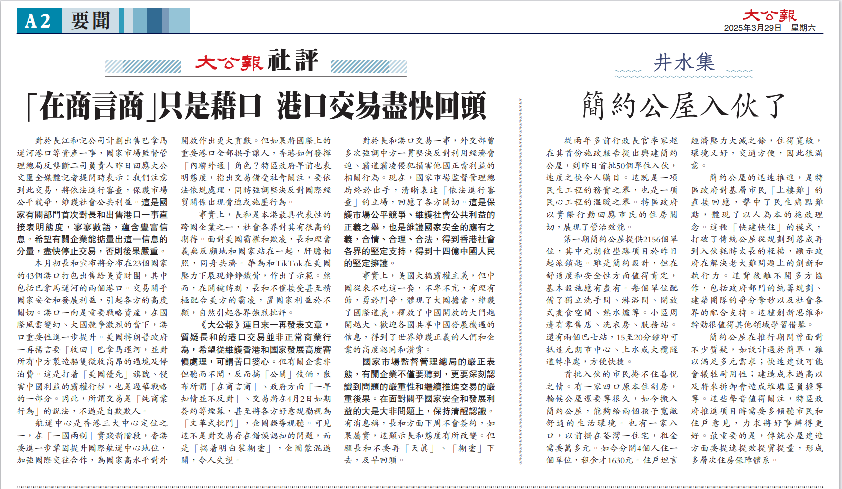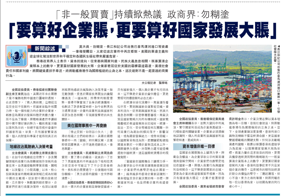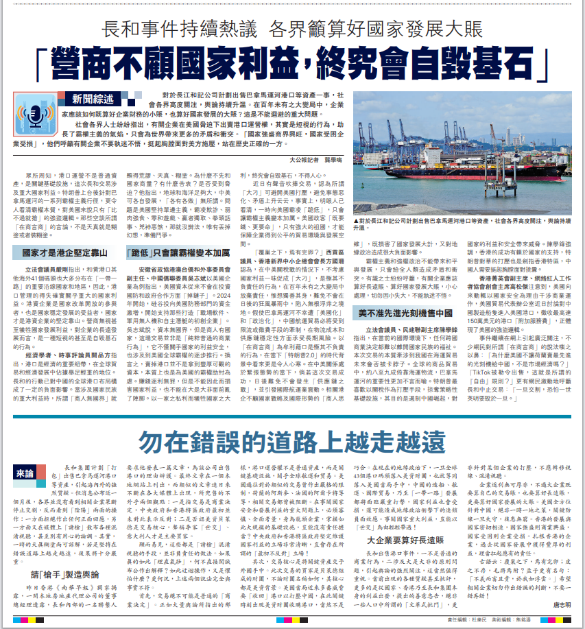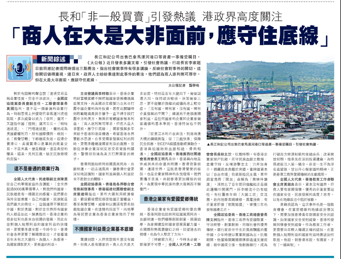 長和事件持續(xù)熱議 各界吁算好國家發(fā)展大賬 “營商不顧國家利益,終究會自毀基石”2025-03-26