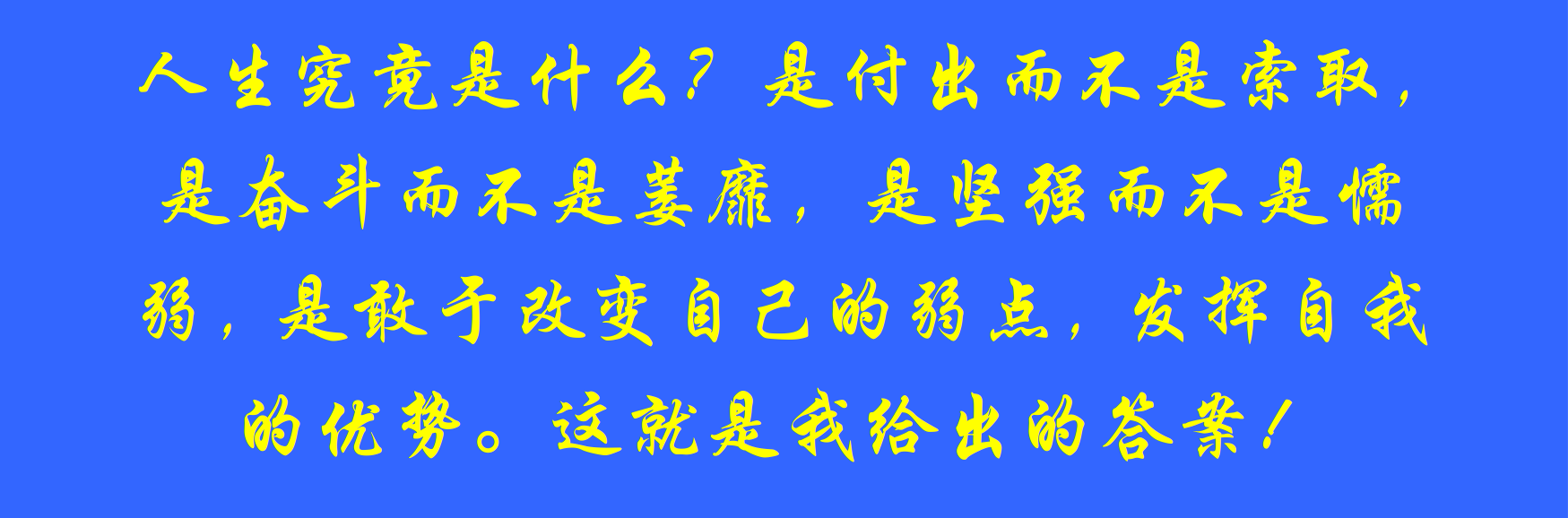 一個有理想信念的人,必然把人生作為一種責任嚴肅對待,必然把困難和斗爭作為人生的命題認真思考,我為什么來又為什么做,如何把工作做到極致,做到滿意,做到無可挑剔,那就是成就別人正是成就自己最佳的選擇,這才是一個有良知人的正確人生態(tài)度!
